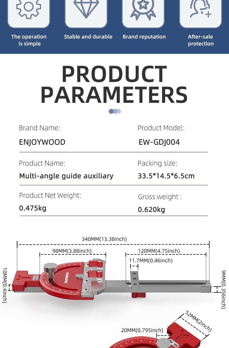 ENJOYWOOD säädettävä monikulmainen sahanohjain kulmapysäytin ohjauskiskolle Makita Festool DeWalt