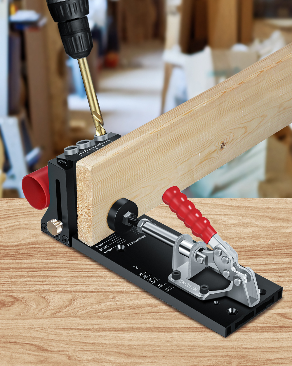 ENJOYWOOD XK4 taskureikäjigi sarja alumiiniseoksesta valmistettu säädettävä puuntyöstön porausopas kulmareikiin poranterällä