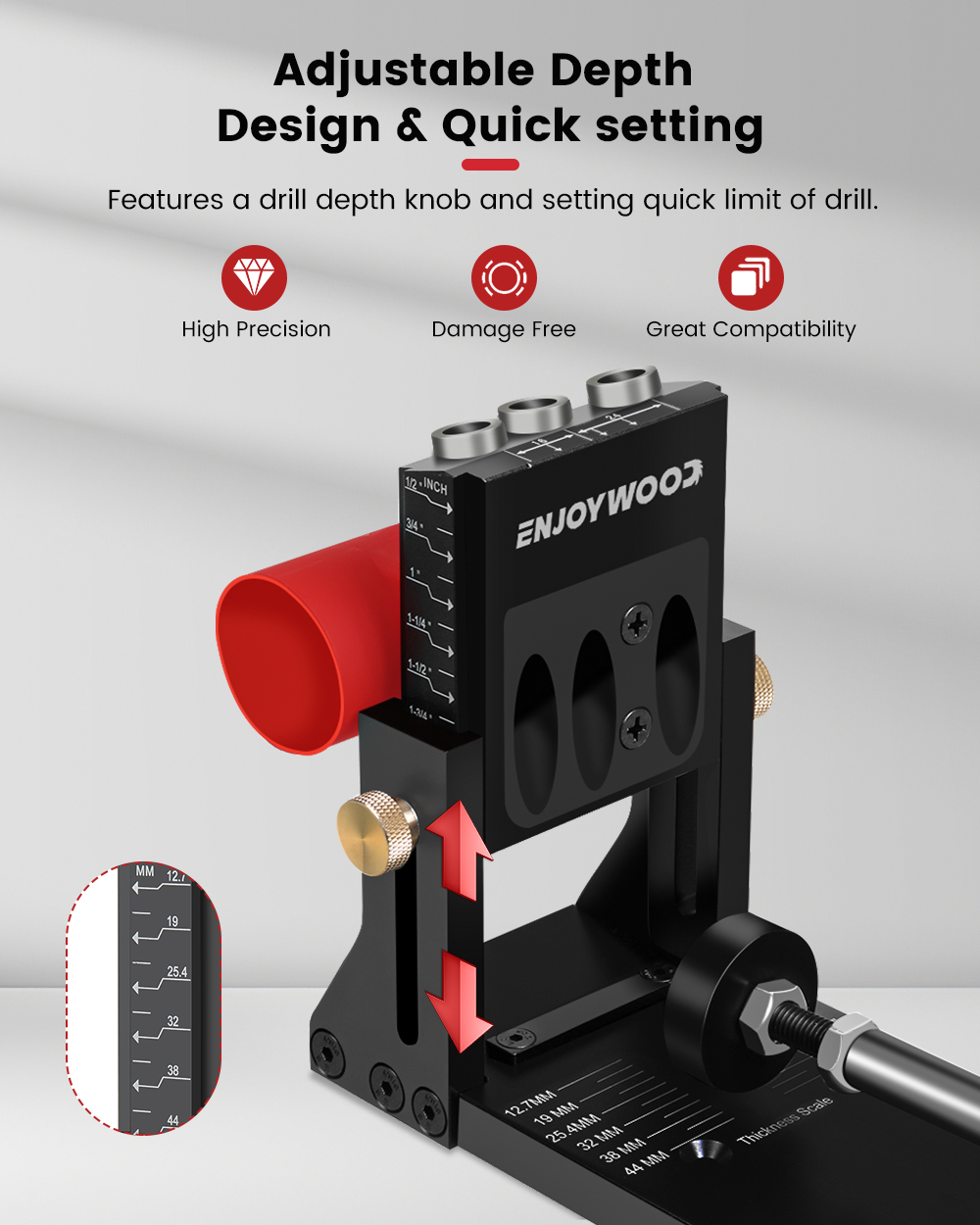 ENJOYWOOD XK4 PRO MAX säädettävä alumiiniseos taskureikäjigi puuntyöstöporan ohjain vakauttava pysäytin