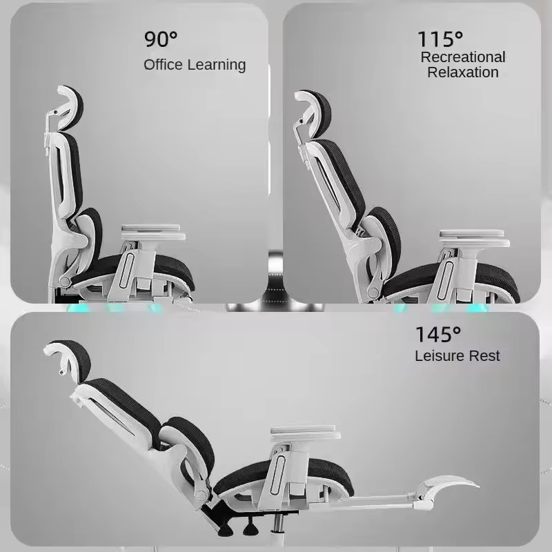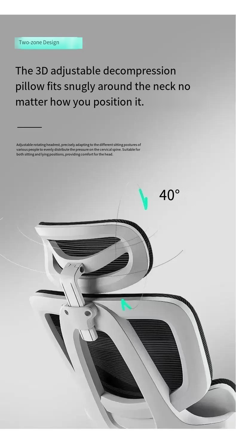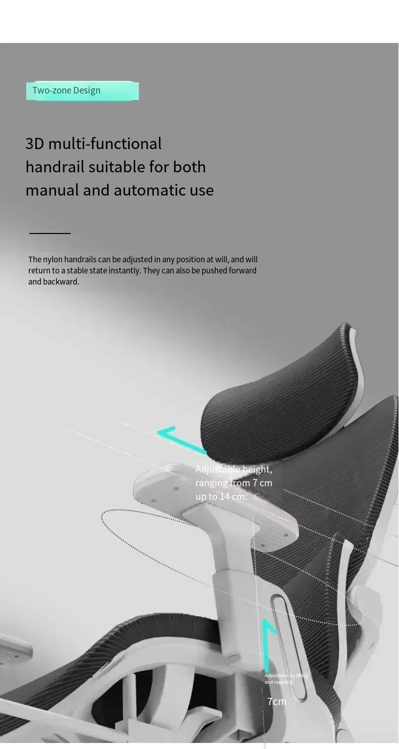 Tukeva ja mukautuva Ergonomic Office Chair tarjoaa kattavan ergonomisen tuen pitkille työ- ja opiskelupäiville. Säädettävä selkänoja, hengittävä nailonverkko ja 3D-säädettävä niskatyyny auttavat ylläpitämään hyvää ryhtiä ja vähentämään kuormitusta.Tekniset tiedot: