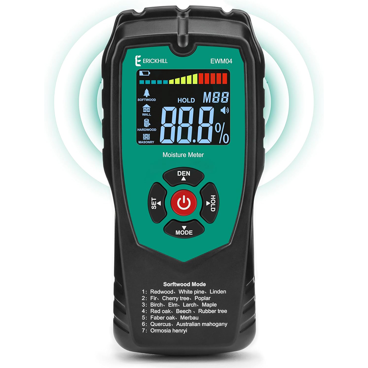 Erickhill EWM03 kompakti puun kosteusmittari tarkka kannettava monitoiminen taustavalaistu näyttö automaattinen virrankatkaisu