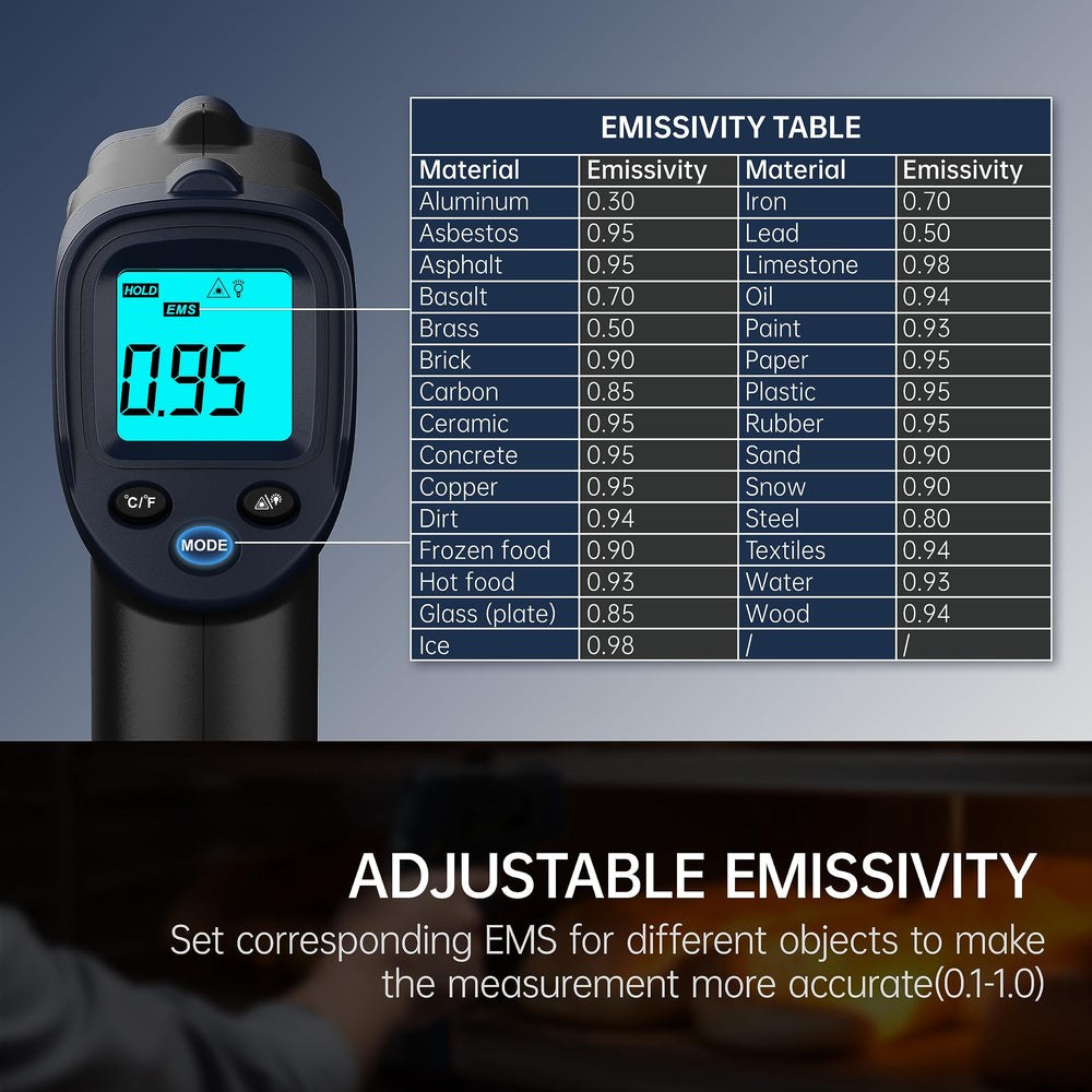 - Helppokäyttöinen: osoita ja paina liipaisinta – taustavalaistu LCD-näyttö helpottaa lukemista myös hämärässä.