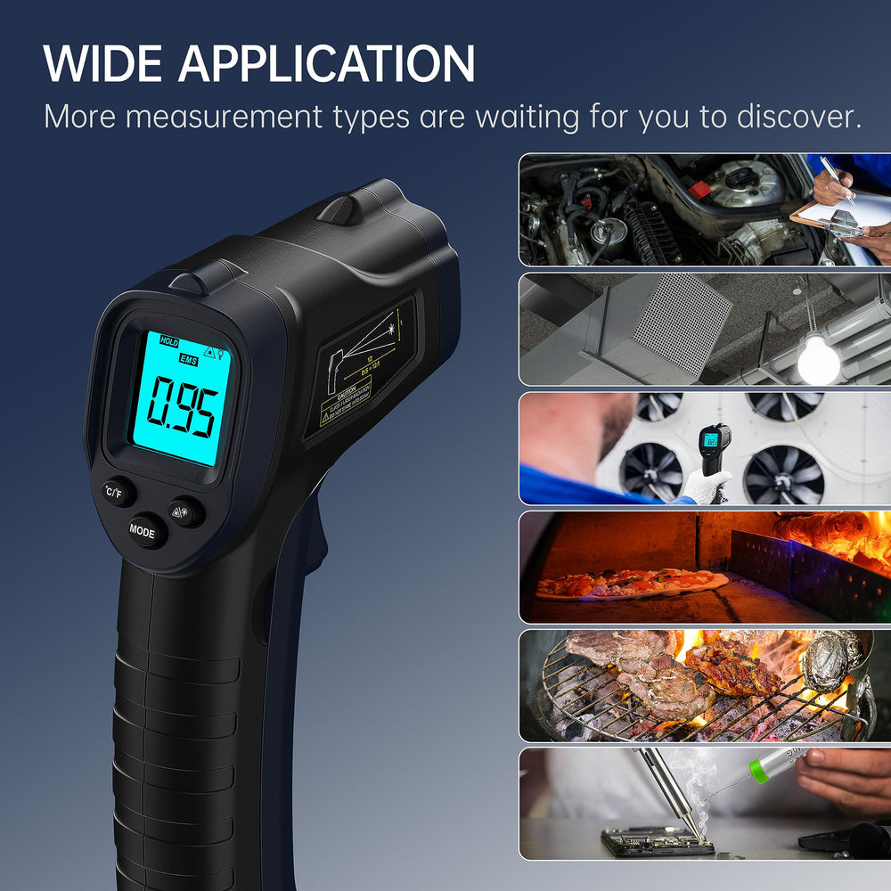 - Monipuoliset käyttökohteet: sopii esimerkiksi LVI-järjestelmien tarkistukseen, sähkövikojen paikantamiseen, ajoneuvojen vianhakuun, ruoanlaittoon ja muihin lämpötilan mittausta vaativiin tehtäviin.