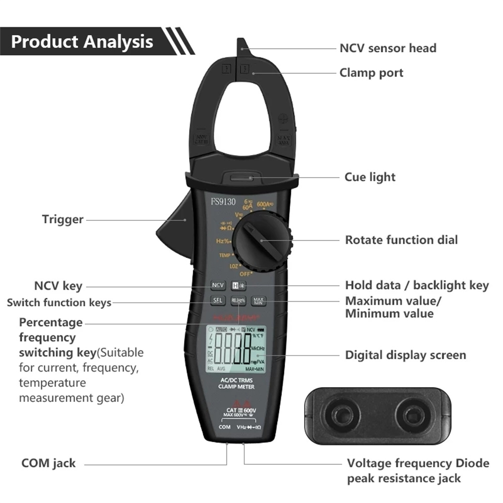 Kun työskentelet sähkön kanssa, mittaustarkkuus on ehdoton vaatimus. Tämä pihtimittari hyödyntää todellista RMS-mittausta ja korkeaa tarkkuutta, joten voit luottaa lukemiin mitatessasi AC- tai DC-virtaa, vastusta, kapasitanssia tai taajuutta.