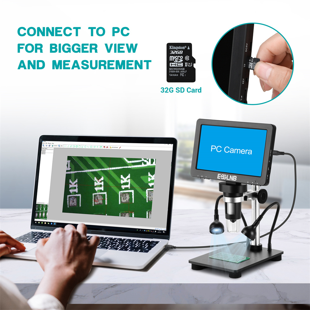 ESSLB ES1051 7-tuuman 1200X digitaalinen mikroskooppi 1080P video 32G TF-kortti kaukosäädin