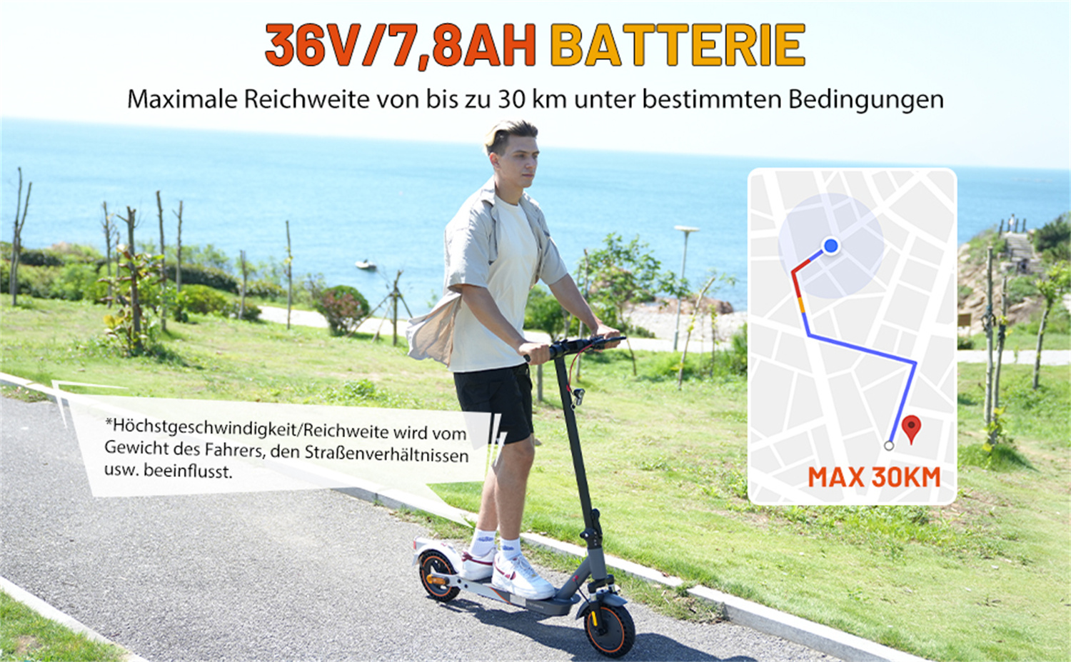 EVERCROSS EV85F sähköpotkulauta ABE-hyväksyntä 36V 7,8Ah-akku 400W moottori 20km/h 30km toimintasäde taitettava 120kg kantavuus
