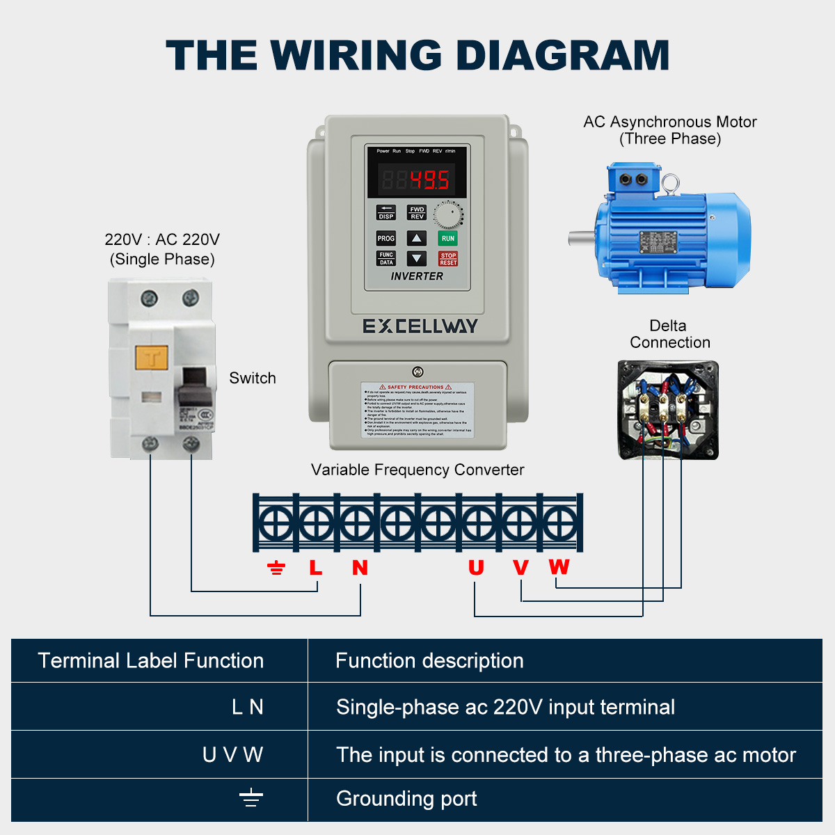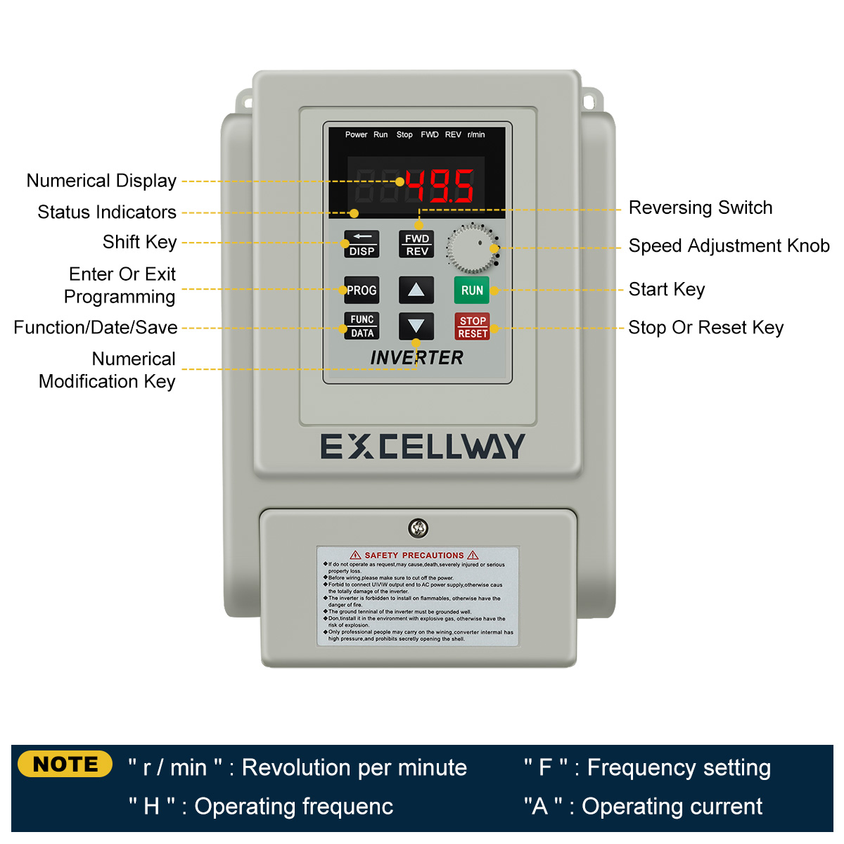 EXCELLWAY taajuusmuunnin 1.5/2.2/3/4 kW 220V yksivaiheinen sisääntulo kolmivaiheinen lähtö PWM-ohjaus PID-säätö