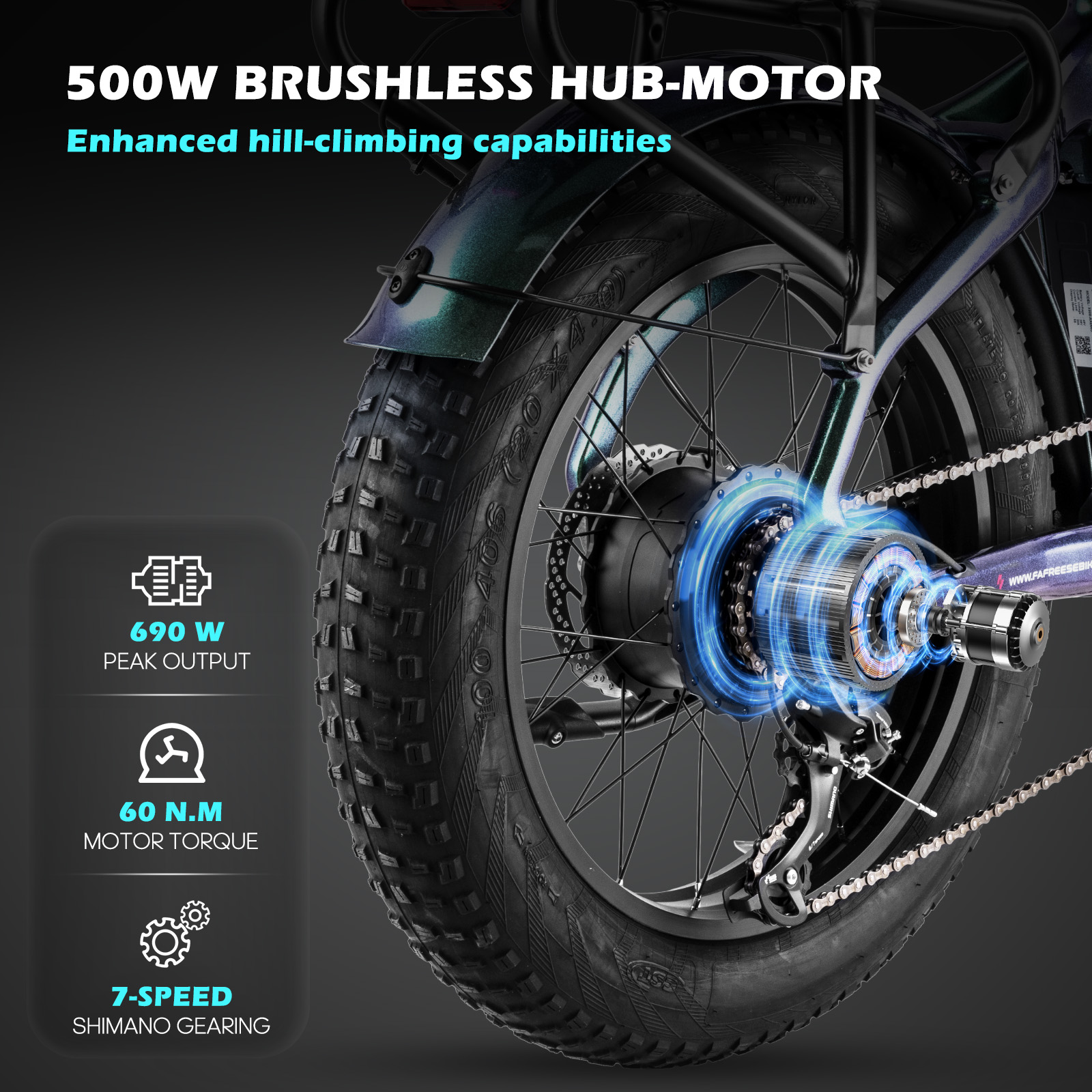 - 500W takamoottori ja enintään 60N.M vääntömomentti vahvaan kiihtyvyyteen ja nousuihin