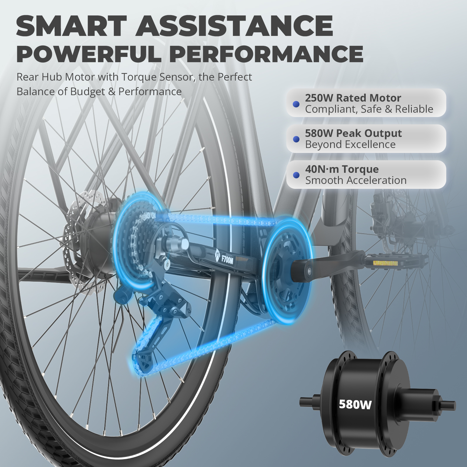 FAFREES F700W on kaupunkiajoon suunniteltu sähköpyörä, jossa yhdistyvät kevyt alumiinirunko, tehokas 36V 250W takanapamoottori ja vääntöanturi luonnolliseen avustustuntumaan.