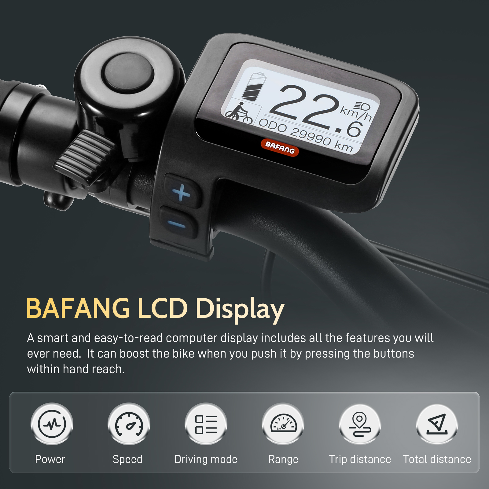 - LCD-näyttö tärkeimpien ajotietojen seurantaan