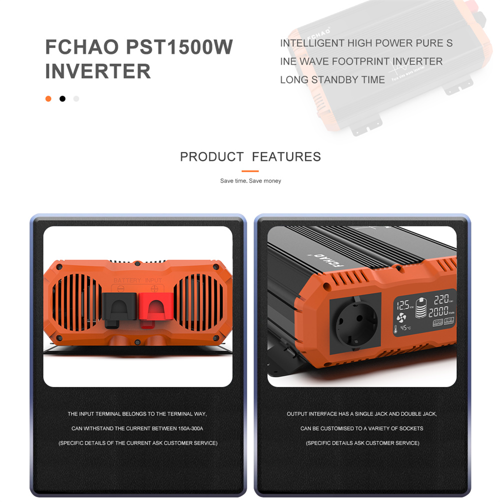 FCHAO PST-1500W 1500W puhdas siniaalto invertteri 12V–230V kotikäyttöön aurinkosähkö