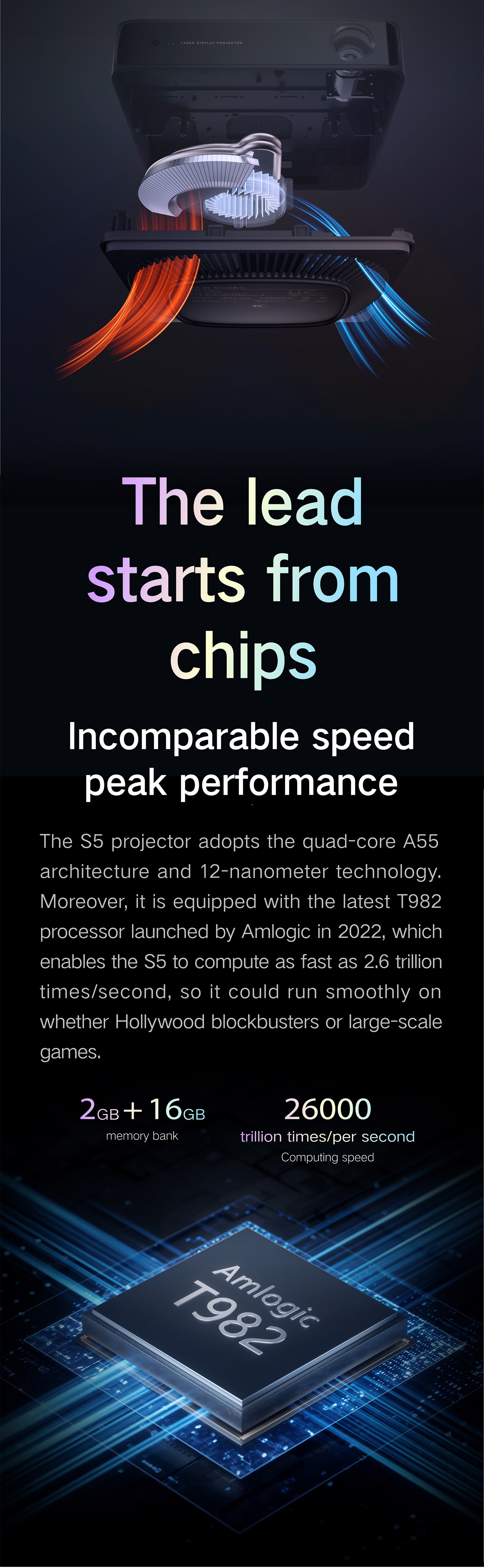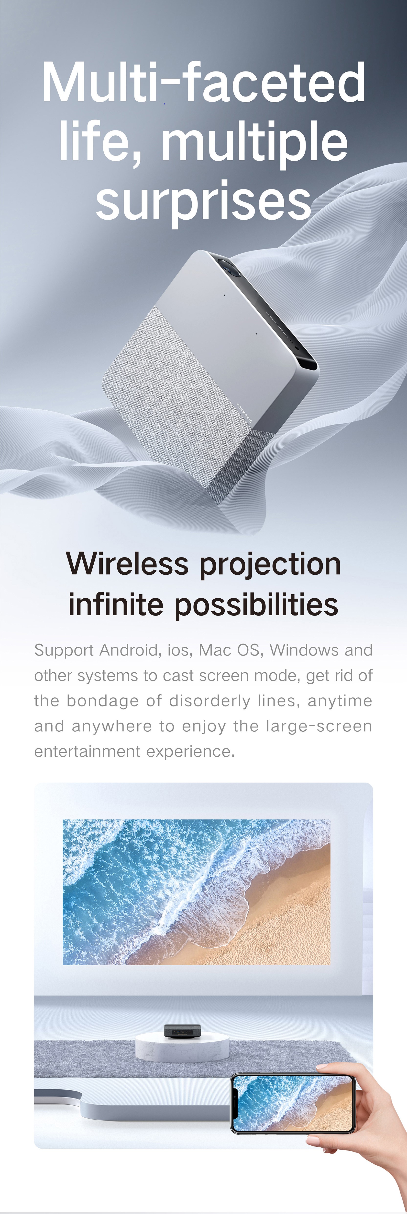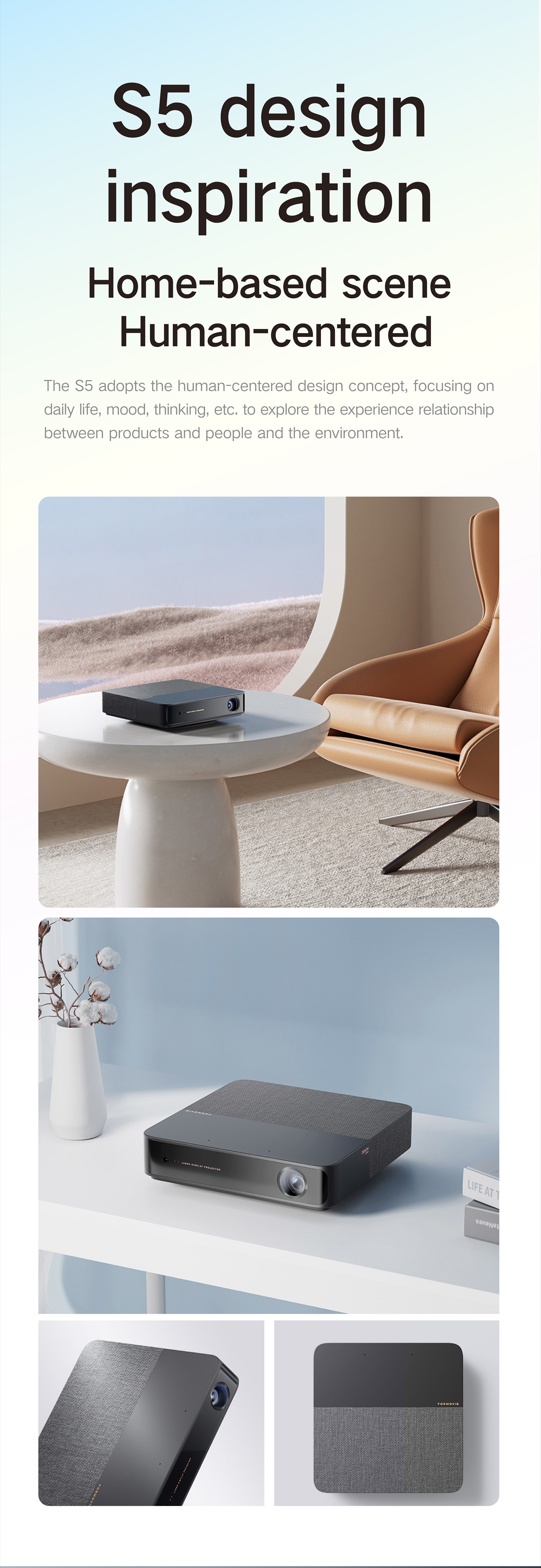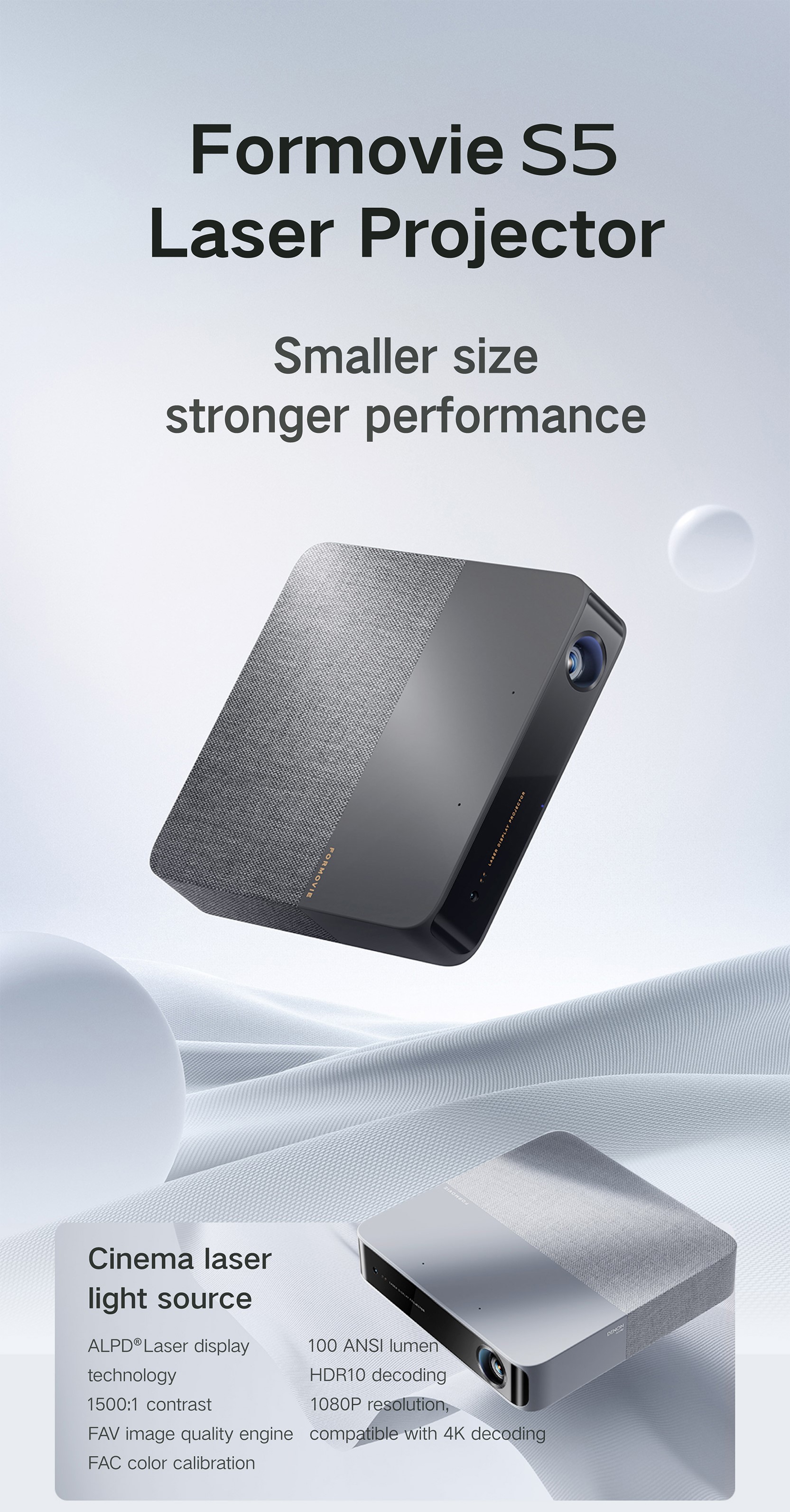 Kompakti Formovie S5 laser projector tarjoaa terävän 1080P-kuvan ja ALPD-valonlähteen kotiteatteriin. Lyhytheittoratkaisun, automaattisen keystone-korjauksen ja sisäänrakennettujen kaiuttimien ansiosta käyttöönotto on vaivatonta. Laitteessa on internet-yhteys sekä kaukokentän puheohjaus, ja vain 0.83 kg paino tekee siitä helpon siirtää tilasta toiseen.