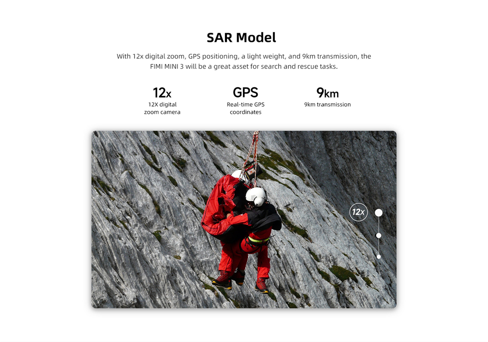 - SAR-tila 6X-digitaalizoomilla ja GPS-paikannuksella etsintä- ja pelastuskäyttöön.
