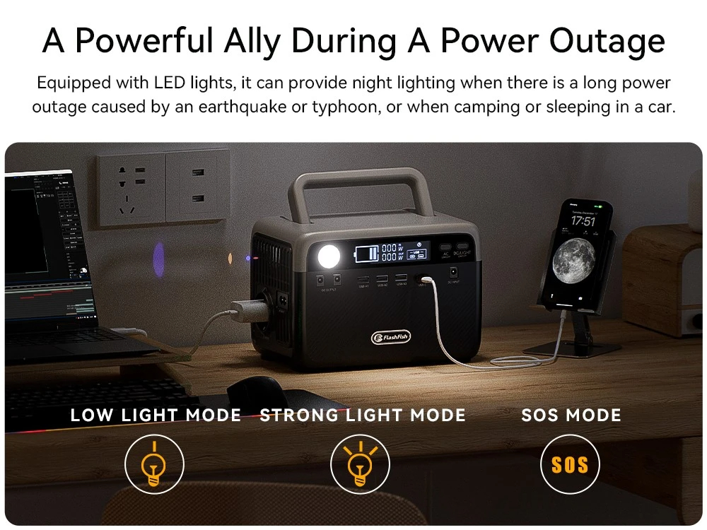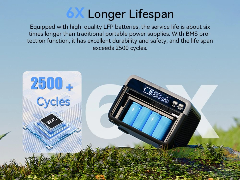 Flashfish BP030B -varavirtalähteessä on A-luokan 230.4Wh LiFePO4-akkupaketti, joka kestää jopa 3500 lataus- ja purkukertaa ja auttaa vähentämään sisäistä lämmönmuodostusta erityisesti käytettäessä enemmän virtaa kuluttavia laitteita.