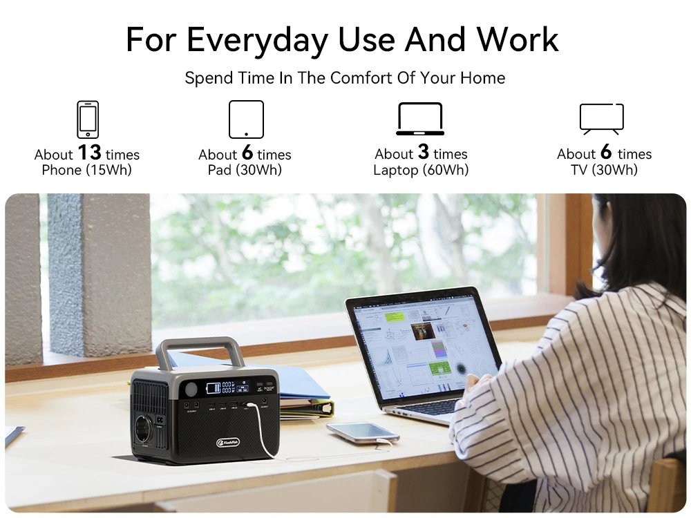 - 300W AC-lähtö (huippu 600W) useille kodin ja ulkoilun laitteille