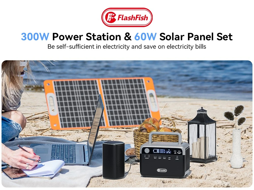 Flashfish BP030B kannettava virtalähde 300W 230,4Wh LiFePO4-akku 600W huipputeho läpivirtaus aurinkogeneraattori