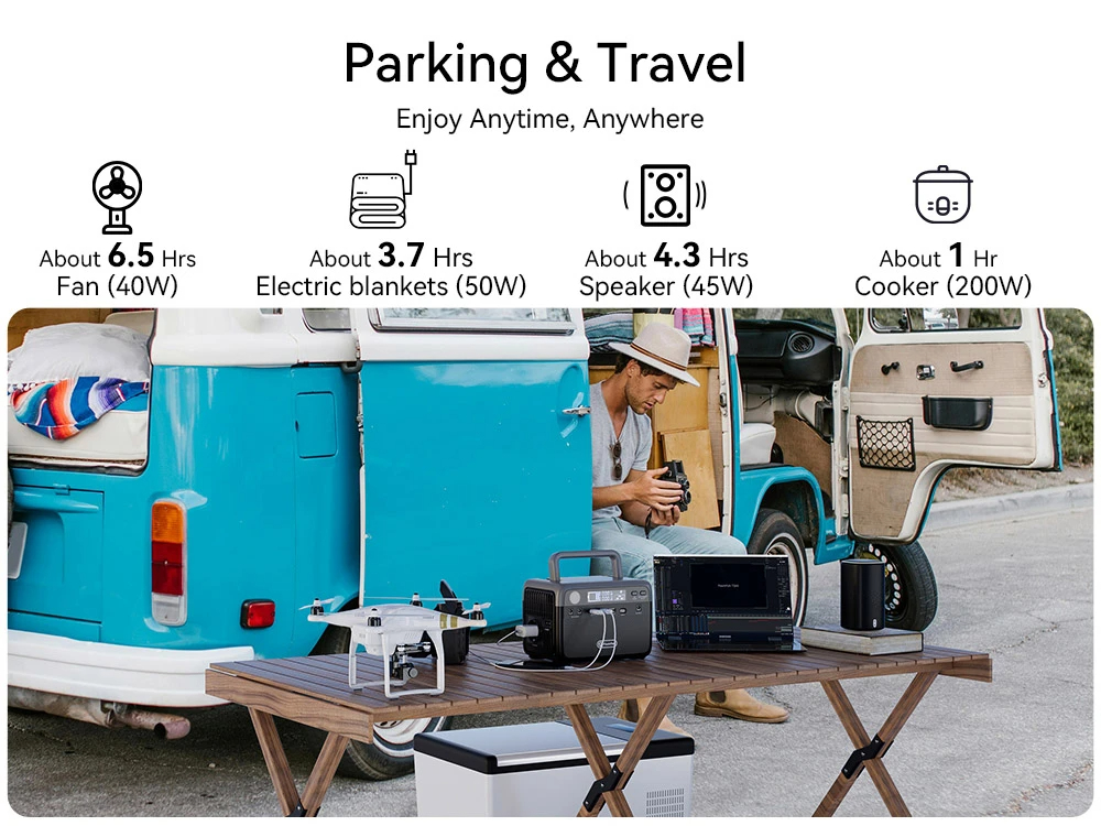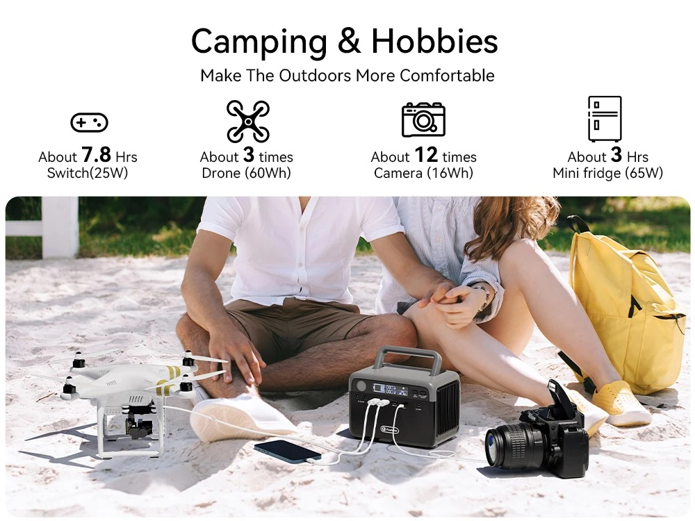 BP030B-kannettava aurinkogeneraattori voi syöttää virtaa erilaisille laitteille aina 300W asti (huippu 600W). Se sopii käytettäväksi esimerkiksi kannettavan tietokoneen, kameran, kuvauskopterin, minijääkaapin, television tai CPAP-laitteen kanssa pidempiäkin aikoja.