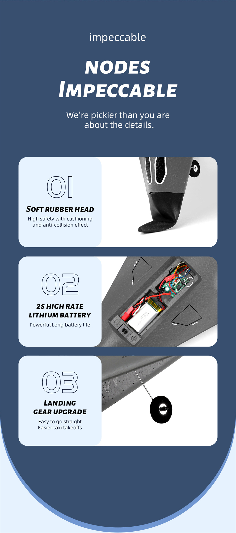 2. EPP-materiaali, erittäin iskuja kestävä, lentopaino noin 98g.