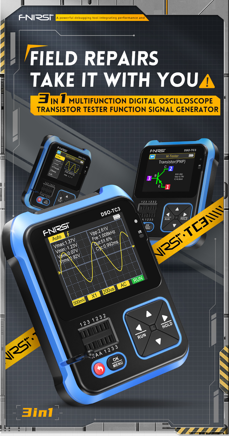 FNIRSI DSO-TC3 3in1 digitaalinen oskilloskooppi transistoritesteri signaaligeneraattori monitoimilaite