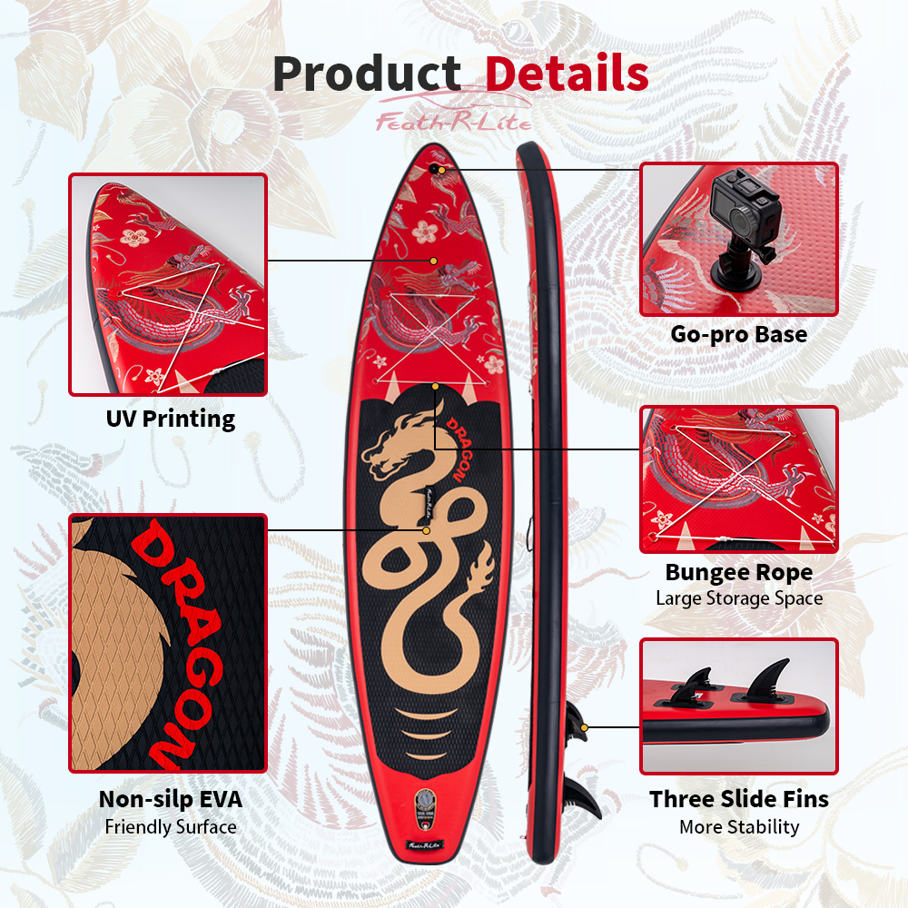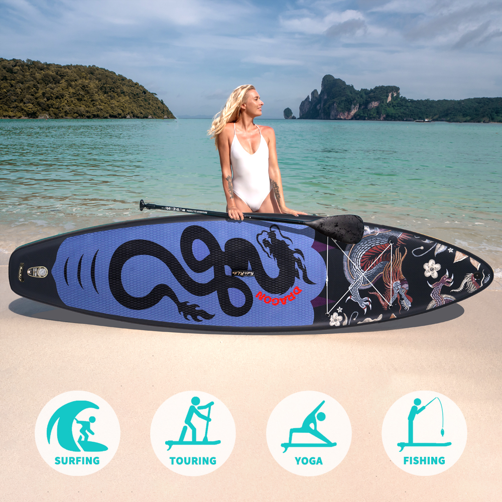 – Monikäyttöinen lauta: sopii melontaan, joogaan, retkeilyyn, kalastukseen ja surffaamiseen. Päivitettyjen D-renkaiden, varmistusremmin, kuormankiinnitysalueen ja laadukkaiden tarvikkeiden ansiosta ilmatäytettävä SUP-lauta toimii monenlaisissa olosuhteissa.