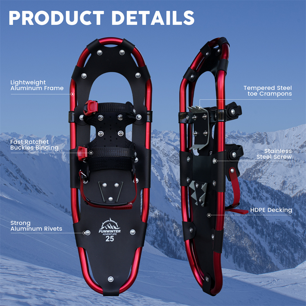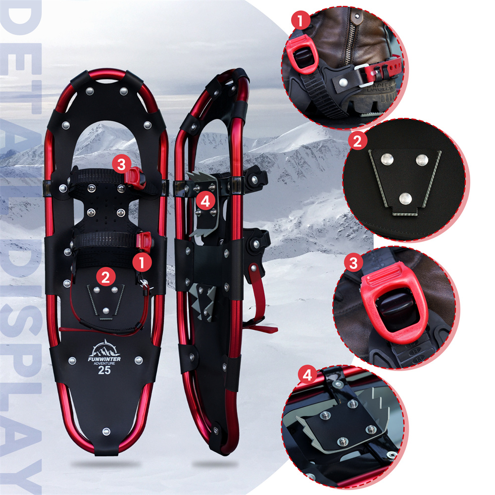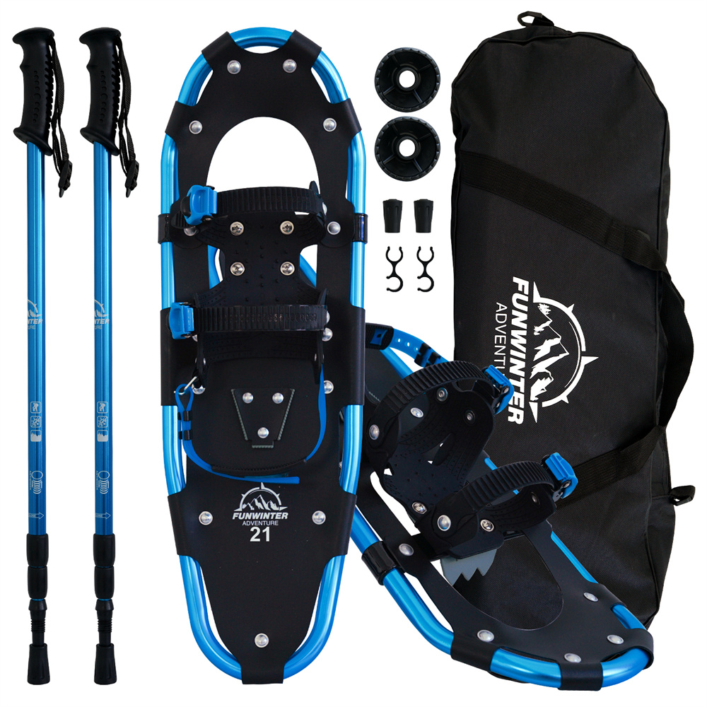 FUNWATER alumiiniset lumikengät 21/25/30 tuumaa helposti puettavat säädettävät sauvat kantokassi