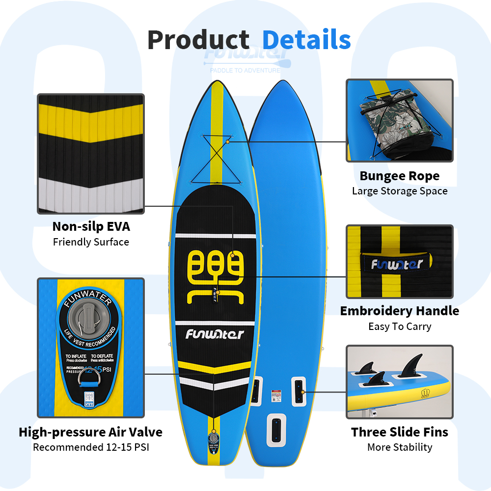 FunWater 335 cm ilmatäytteinen SUP-lauta aikuisten täydellinen setti säädettävä mela pumppu reppu