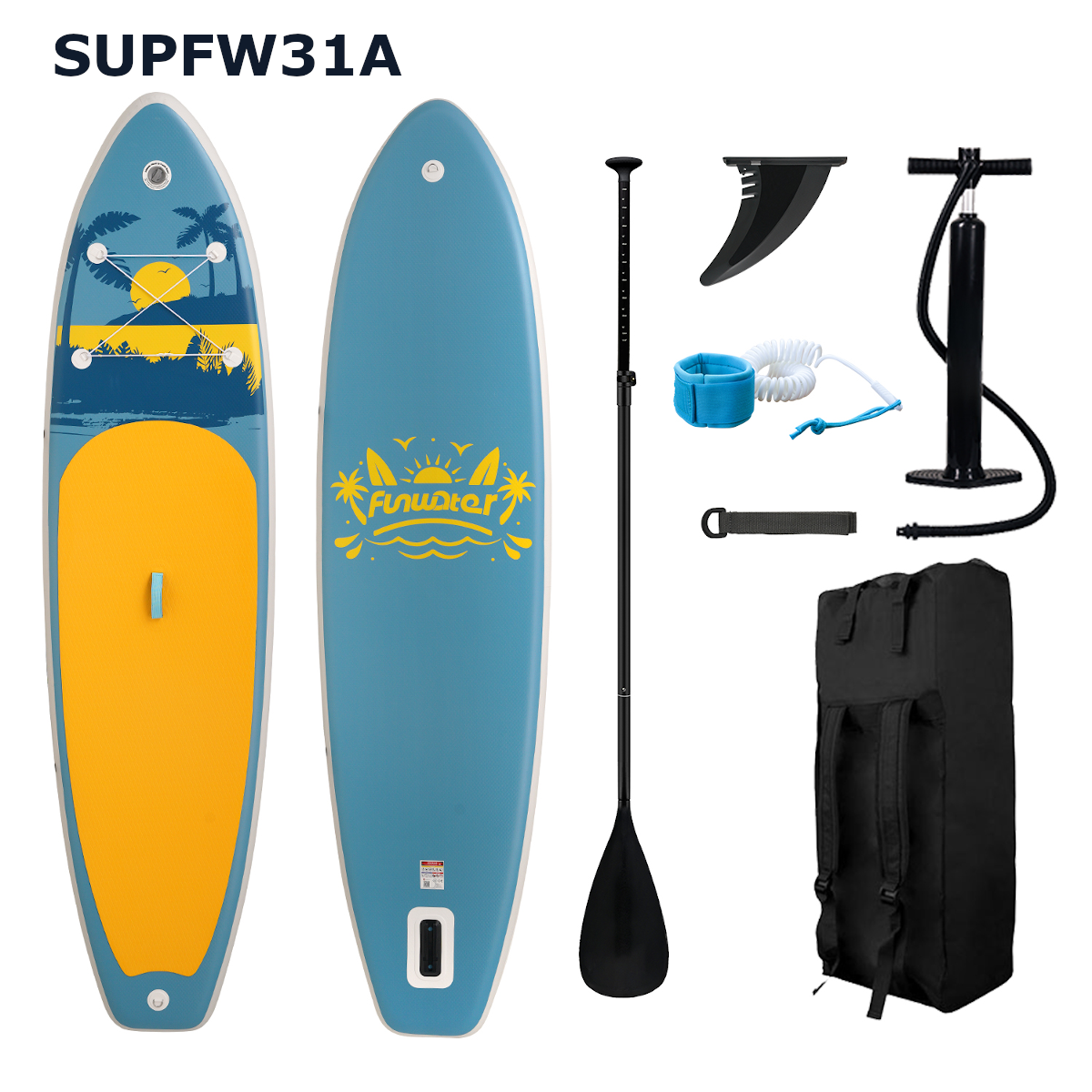 - Täydellinen varustepaketti: aikuisten SUP-pakettiin sisältyy kaikki tarvittava – lauta, pumppu, turvaremmi, kolme evää, reppu ja säädettävä alumiininen mela – voit viettää koko päivän vesillä.