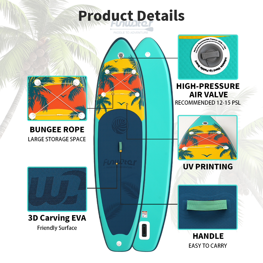 FunWater puhallettava ultrakevyt sup-lauta kaikentasoisille mukana mela pumppu reppu SUPFW02B