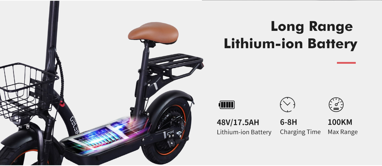 GELEIPU C14 sähköpotkulauta istuimella 48 voltin 17,5 ampeeritunnin akku 500 watin moottori 100 km toimintasäde