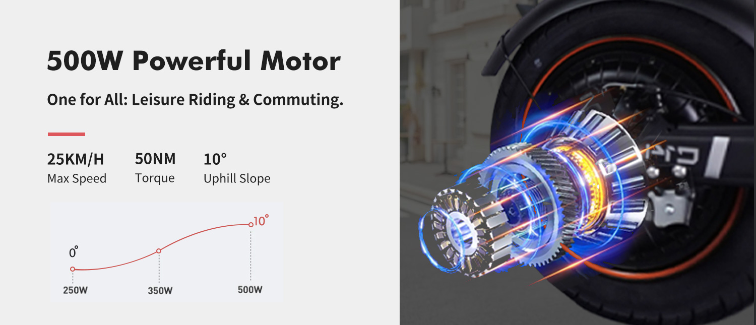 - Tehokas 500W-moottori ja 50N.n vääntö kaupunki- ja taajama-ajoihin