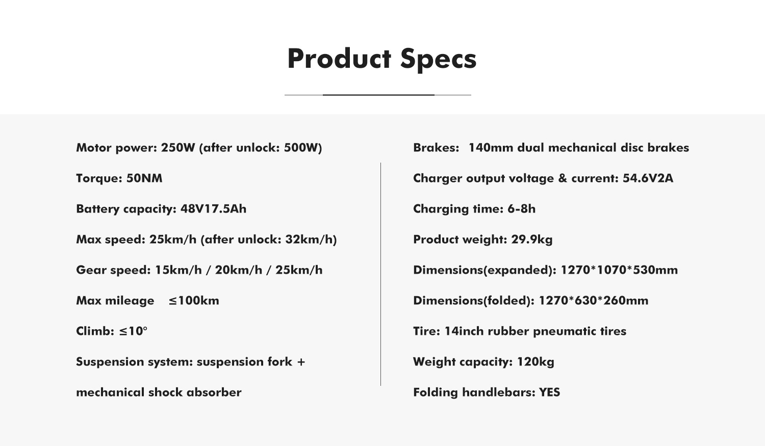 | Lisävarusteet | Etukori, istuin, takatavarateline | Oletusnopeus | 25KM/H (32KM/H avaamisen jälkeen) |