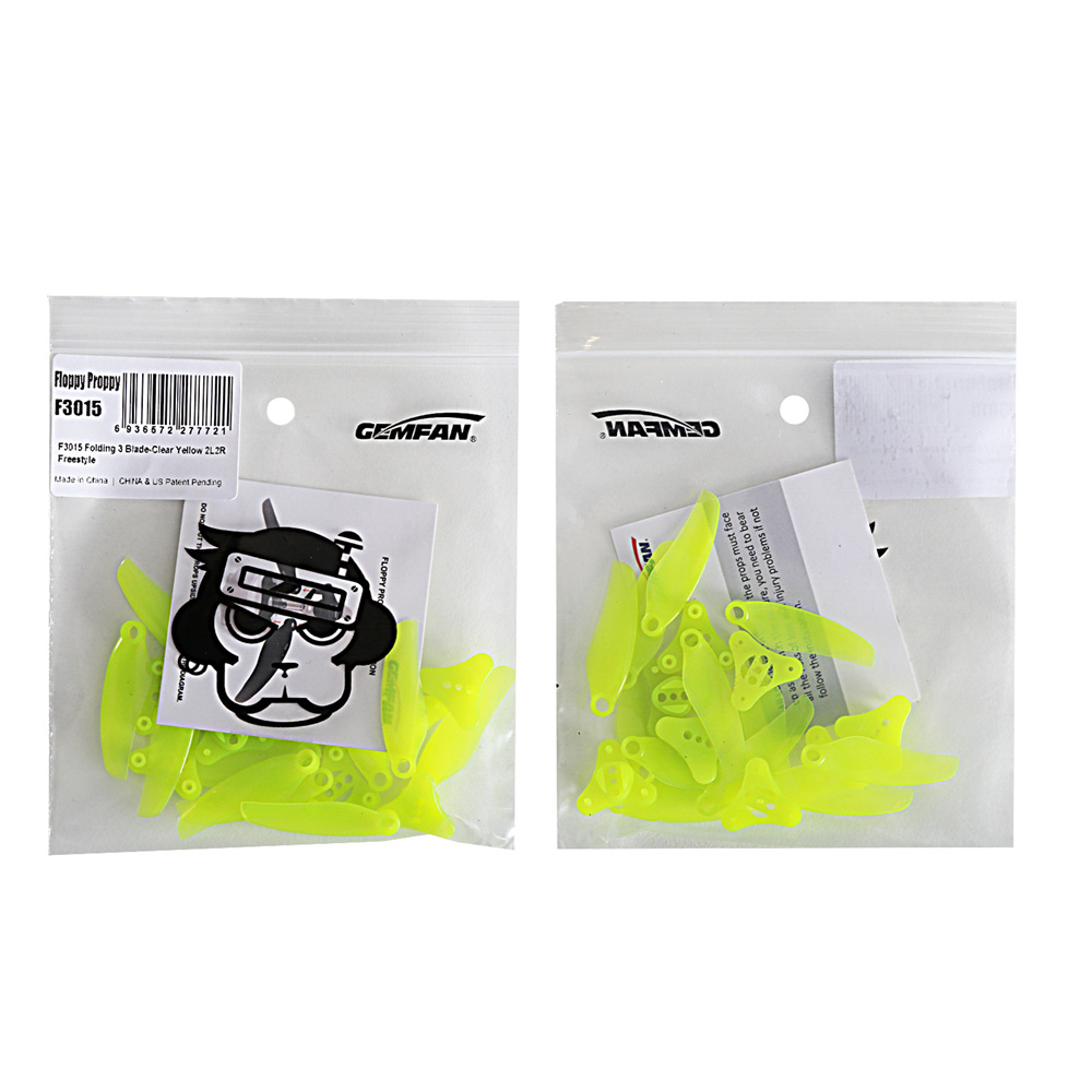 Gemfan Floppy Proppy F3015 on 3-tuumainen, taittuvalapainen potkurisetti kevyille koptereille. Taittuva rakenne suojaa lapoja osumissa ja helpottaa kuljetusta, ja tasapainoinen polykarbonaattilapa tuottaa tehokkaan pidon pienillä moottoreilla.