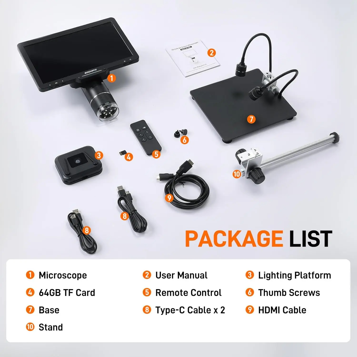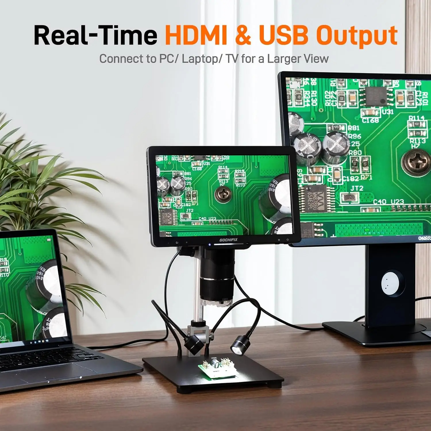 GOCHIFIX 10,1 tuuman 3-linssi 2K mikroskooppi 1000–2500x kolikkoihin ja juotostöihin