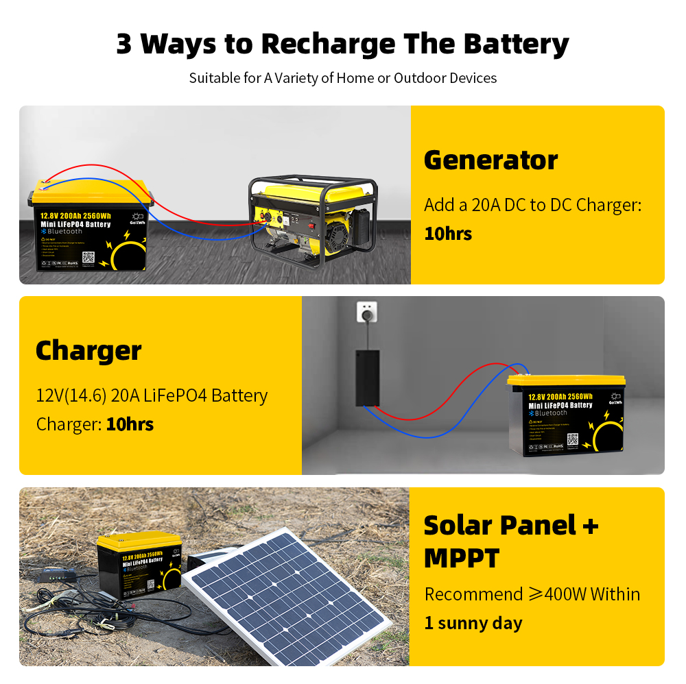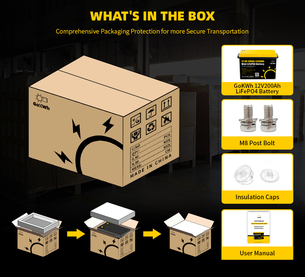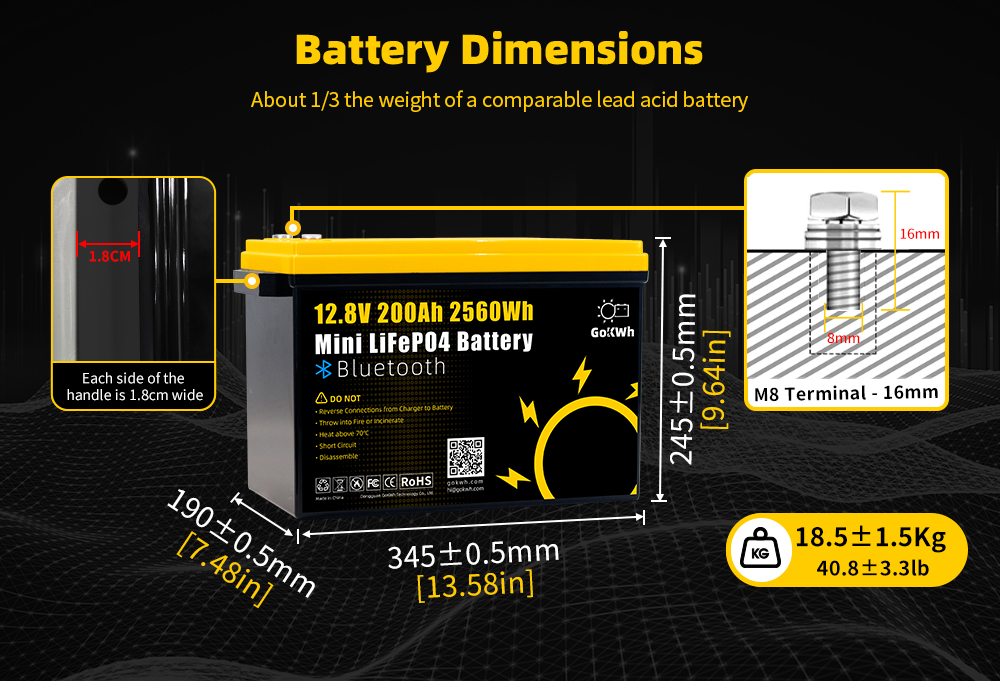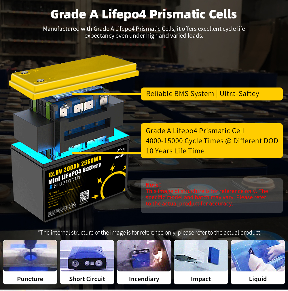 Gokwh 12,8 V 200 Ah minikokoinen LiFePO4-akku sisäänrakennetulla Bluetooth-BMS:llä IP65-suojattu