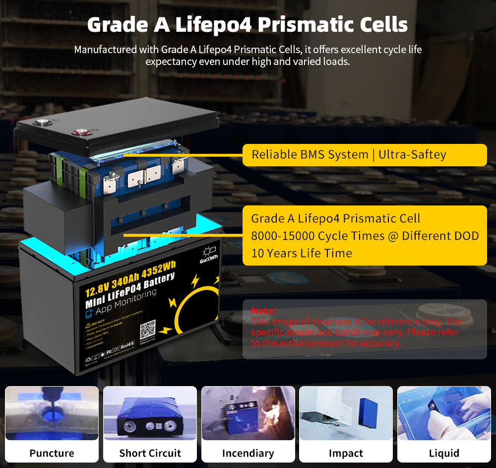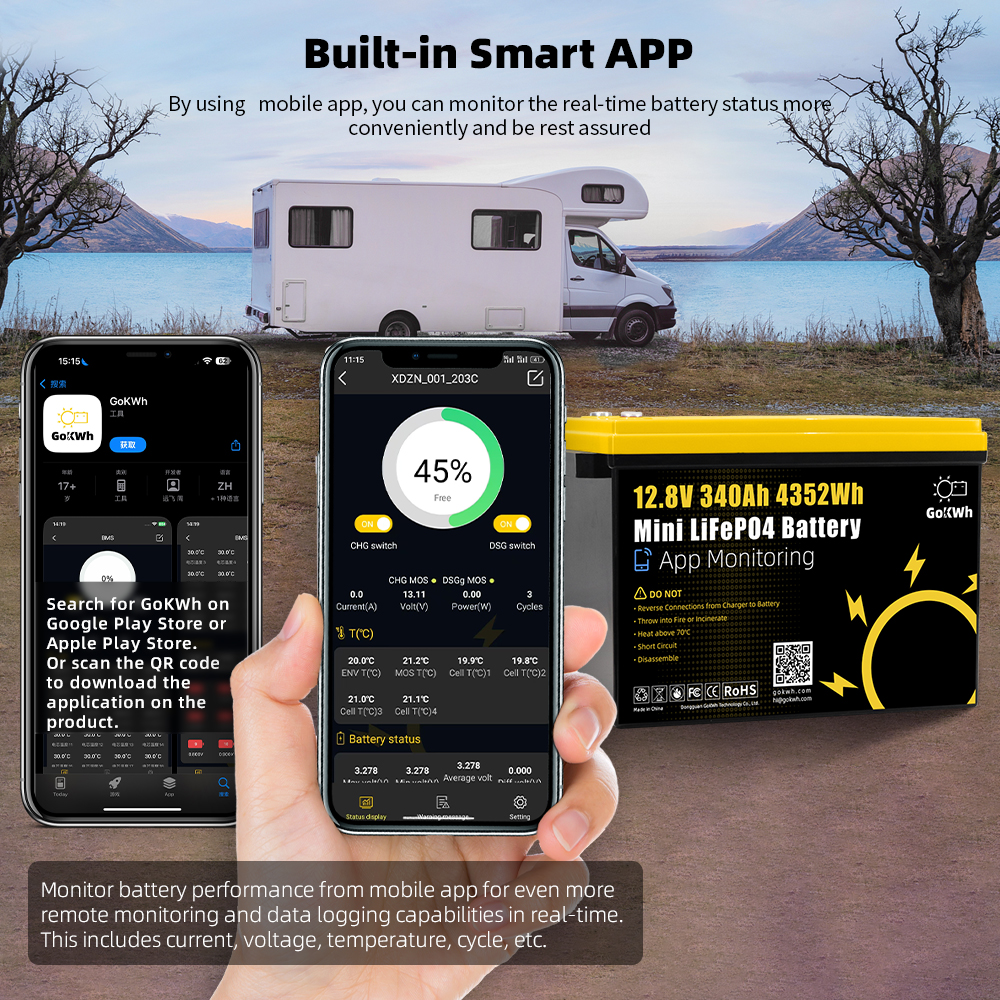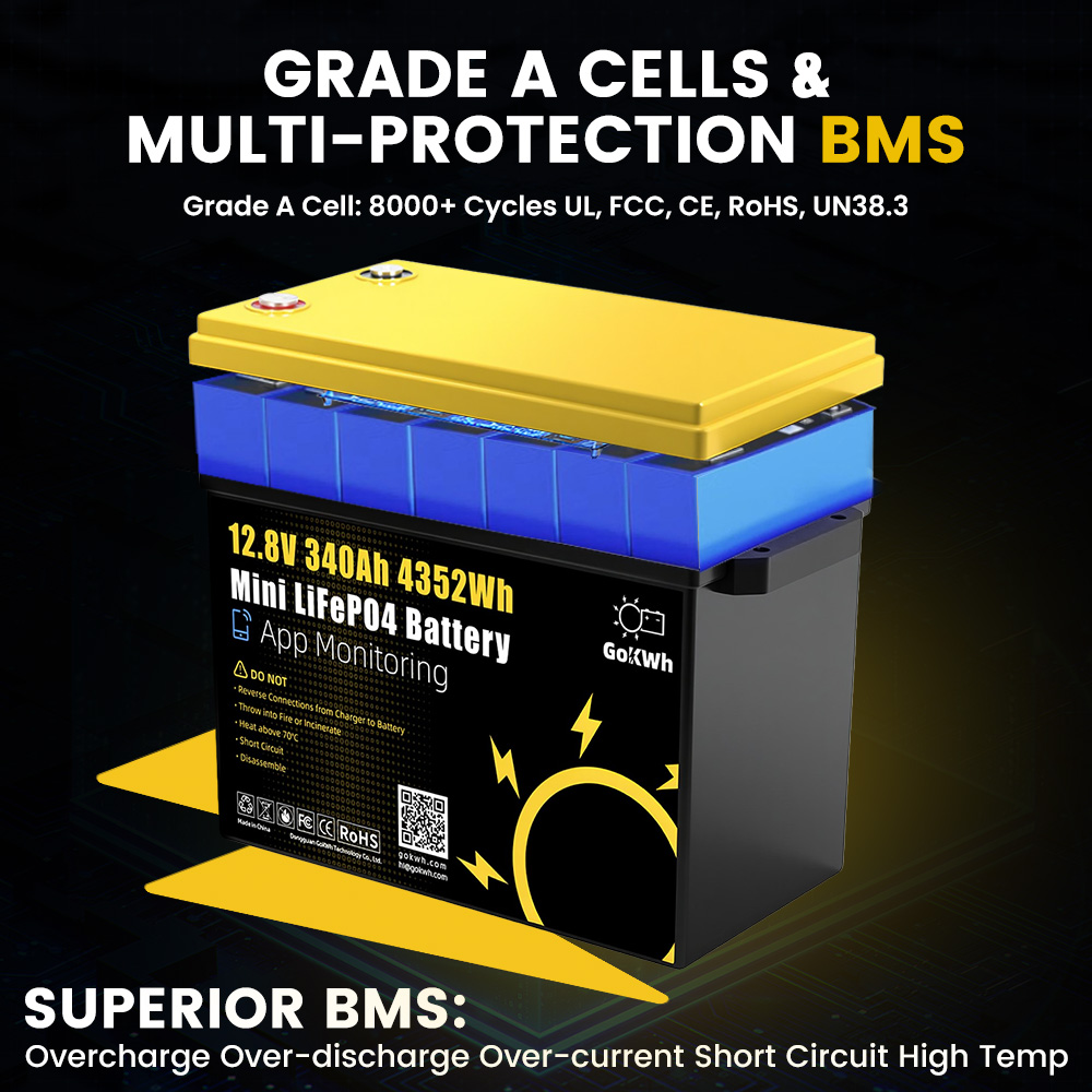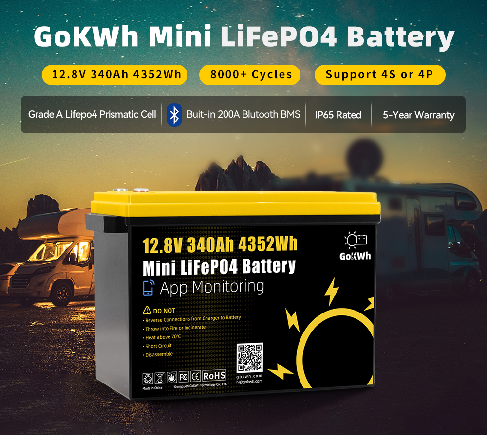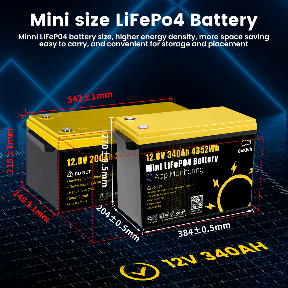 GOKWH 12V 340Ah LiFePO4-kenno akku 4352Wh sisäänrakennetulla 200A langattomalla BMS:llä säilytyslaatikko ajoneuvoon