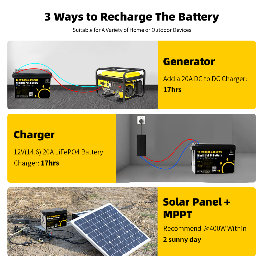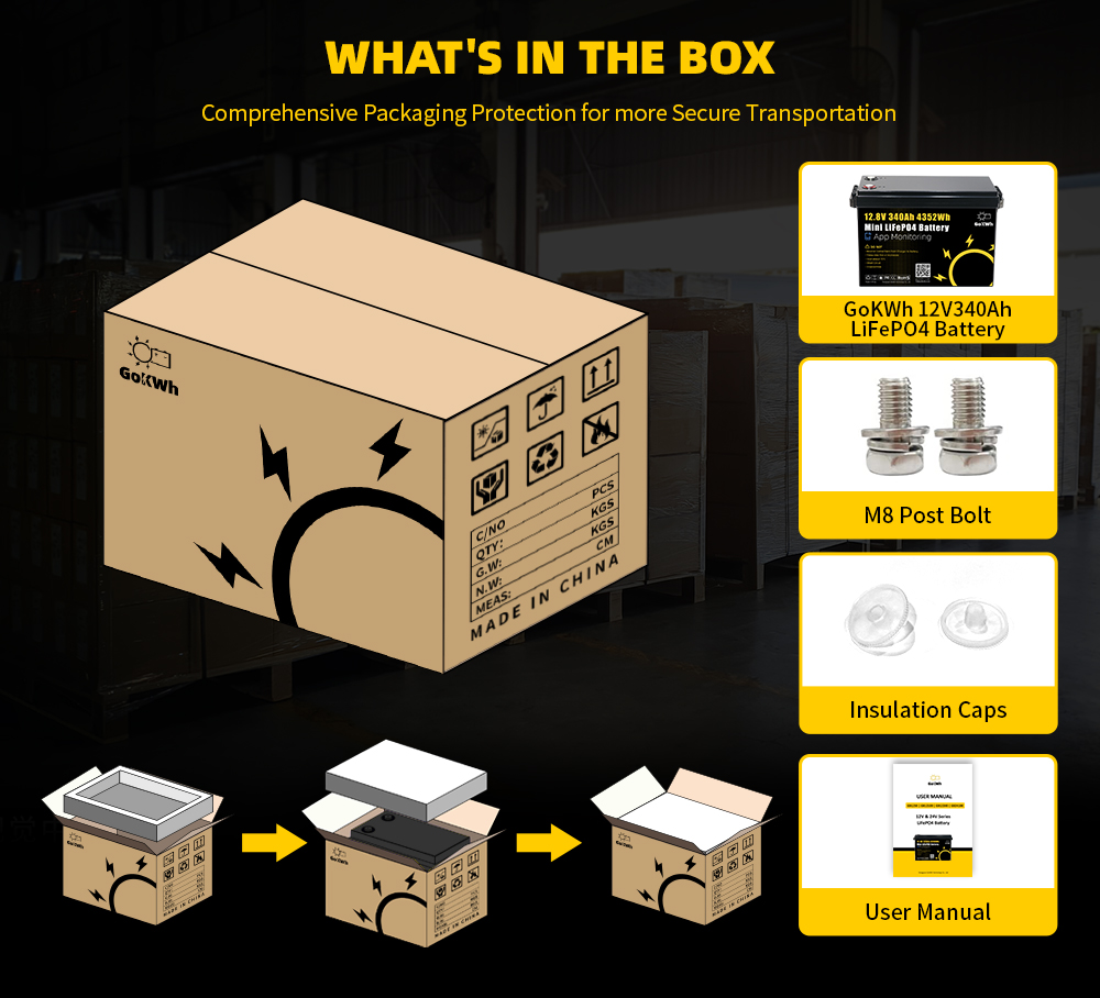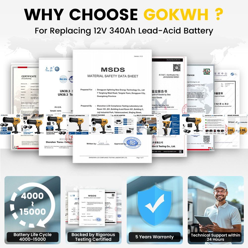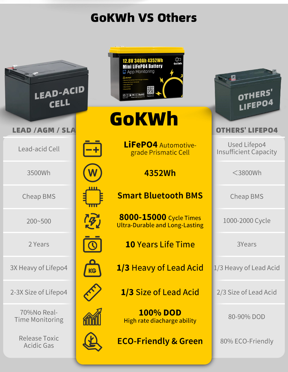 1× GOKWH 12V 340Ah LiFePO4 Battery