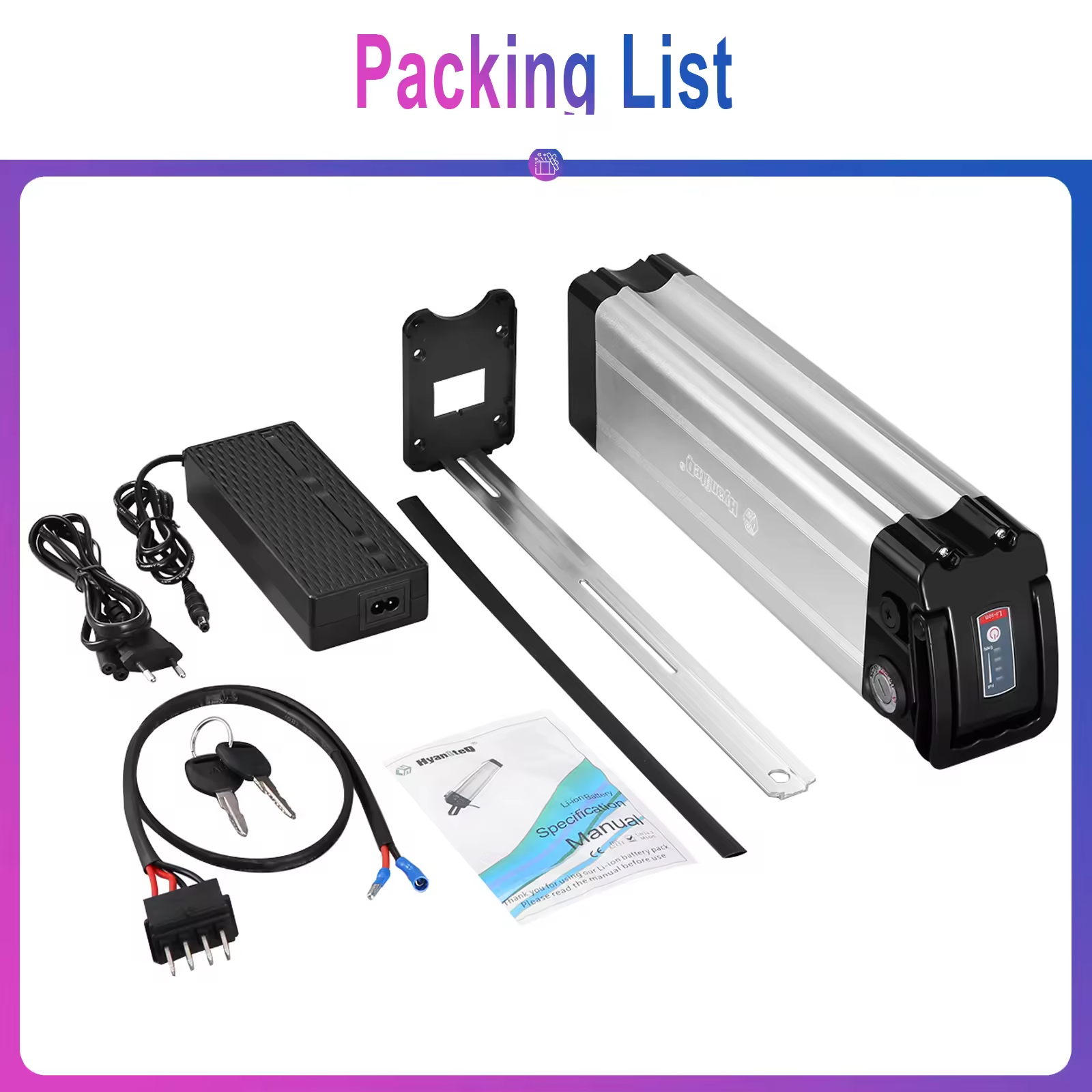 - Helppo asennus: kevyt ja kompaktin kokoinen Li-ion -akku on helppo asentaa ja irrottaa. Sopii 600W sähköpyörään.