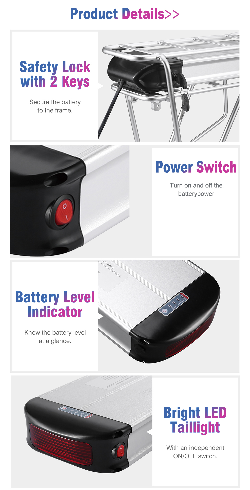 HANIWINNER HA074-03-01 48V 15Ah 720W litiumakku sähköpyörään ilman takakehystä sisäänrakennetulla takavalolla 24-28 tuumaa