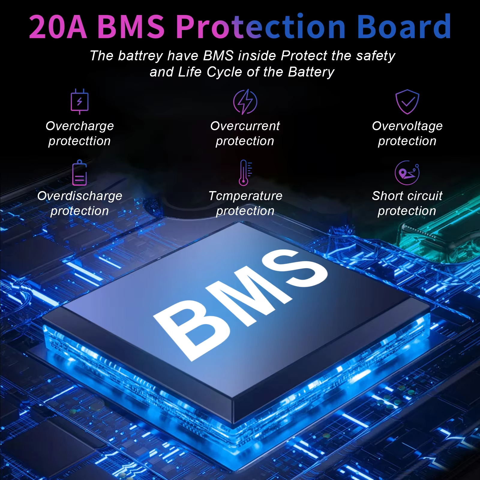Laadukas akku on varustettu 30A BMS-suojalevyllä, joka suojaa ylilataukselta, alipurkaukselta, ylivirralta ja oikosuluilta. Tämä parantaa turvallisuutta ja pidentää akun odotettua käyttöikää.