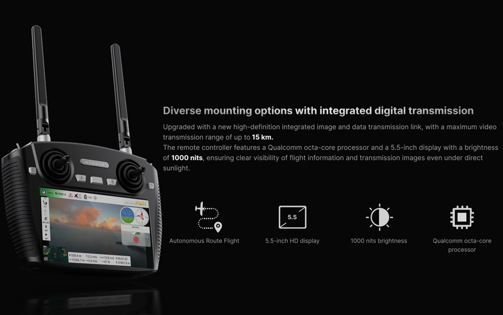 Kauko-ohjausetäisyys: 15km (avoimessa tai esteettömässä ympäristössä)