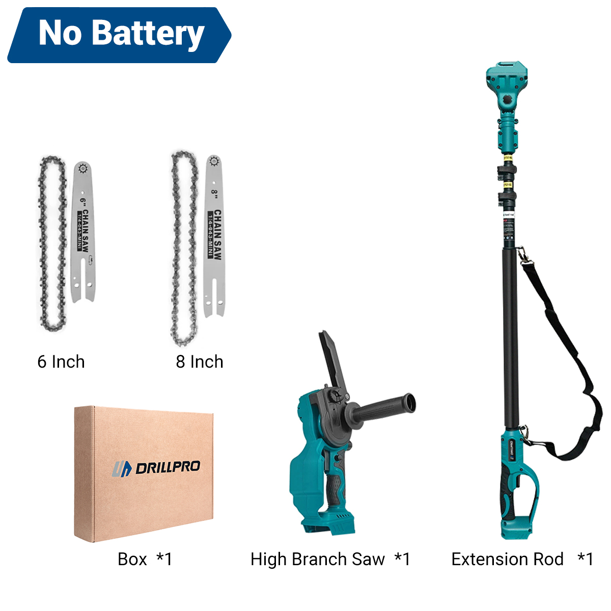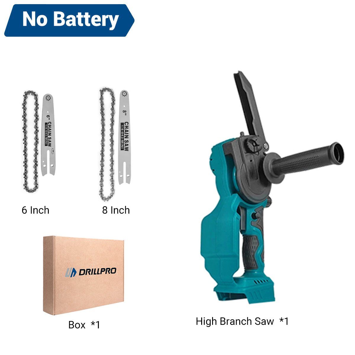 Pakkaus sisältää harjattomalla moottorilla varustetun sähköisen ketjusahan, joka sopii oksien, pienten runkojen ja polttopuiden nopeaan katkaisuun. Mukana 6-tuumainen ja 8-tuumainen laippa sekä ketjut eri käyttökohteita varten.