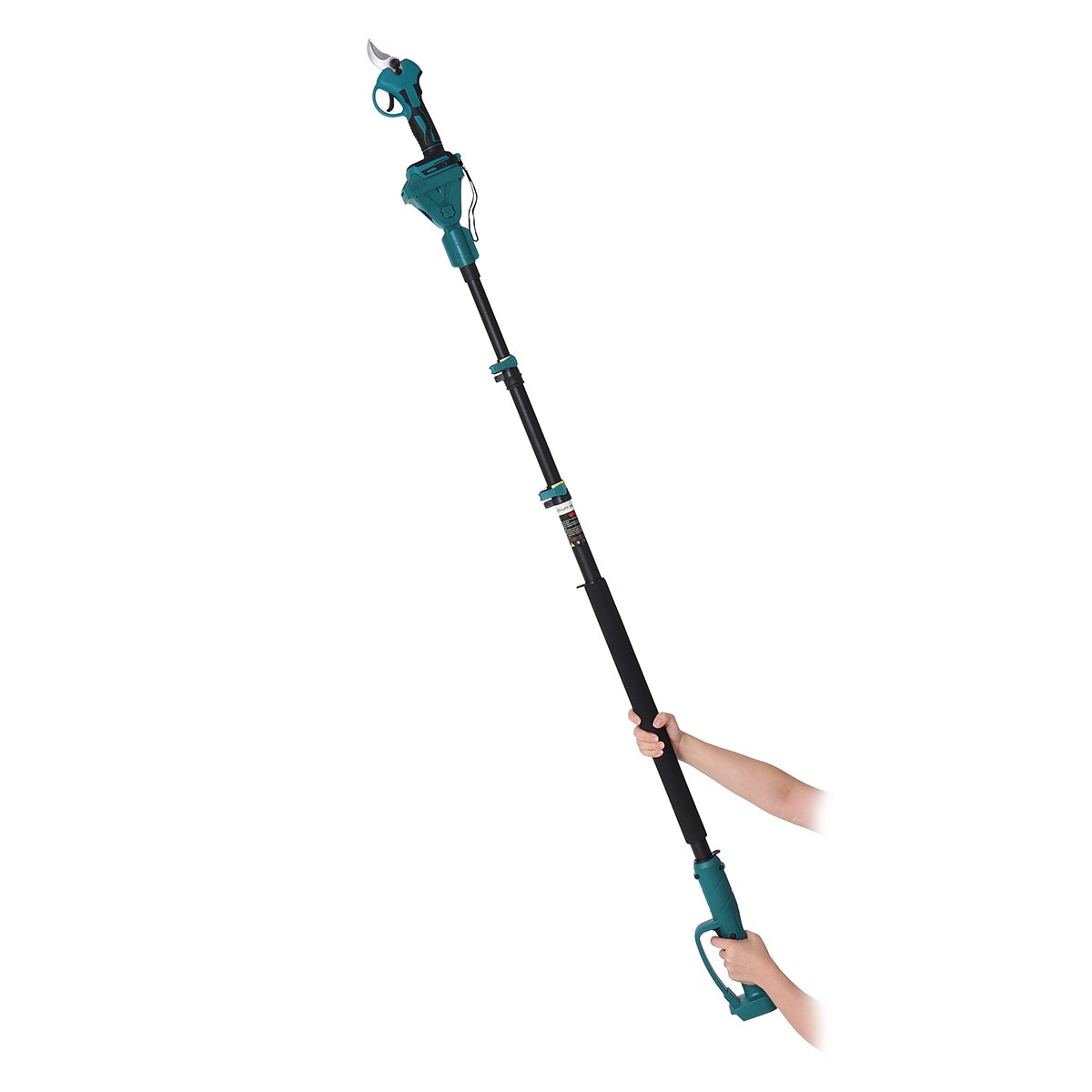 Harjaton oksasakset 250 cm:n teleskooppivarrella 35 millimetrin leikkauskapasiteetti ergonominen akkuyhteensopiva hedelmäpuille