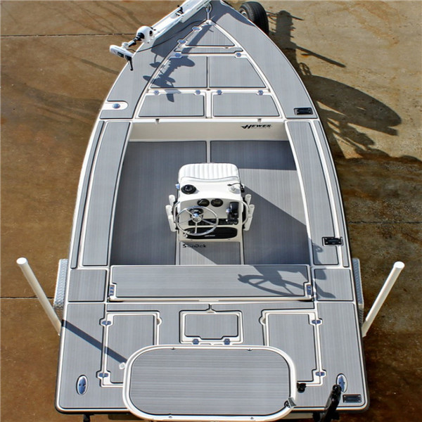Harmaa EVA-vaahtomuovinen teak-kuvioitu lattiamatto veneisiin ja muihin ajoneuvoihin. Materiaali tarjoaa pitävän, vedenkestävän ja mukavan pinnan, joka vaimentaa tärinää ja suojaa alustaa.