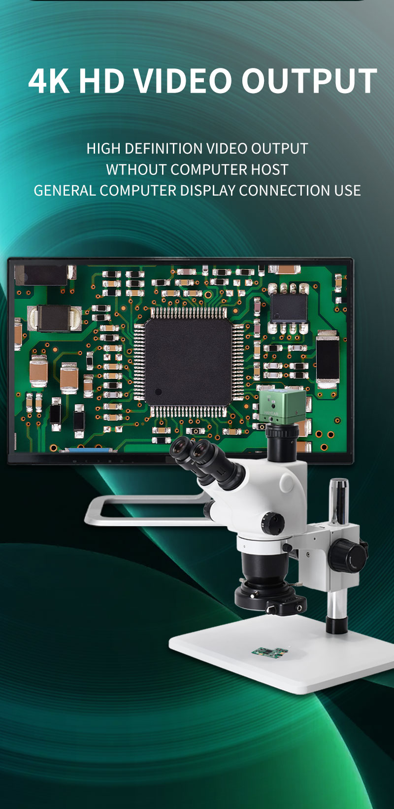 Tämä HY-6210S mikroskooppikamera hyödyntää Sony CMOS IMX678 -kennoa ja tuottaa jopa 8MP kuvanlaadun ja 4K-videon. Kamera voidaan liittää suoraan näyttöön HDMI-liitännällä tai tietokoneeseen USB:n kautta, ja se tukee sekä muistikorttitalletusta että tallennusta suoraan PC:lle. Soveltuu erinomaisesti elektroniikkakorjaukseen, tarkastukseen, opetukseen ja muuhun mikroskooppityöhön.