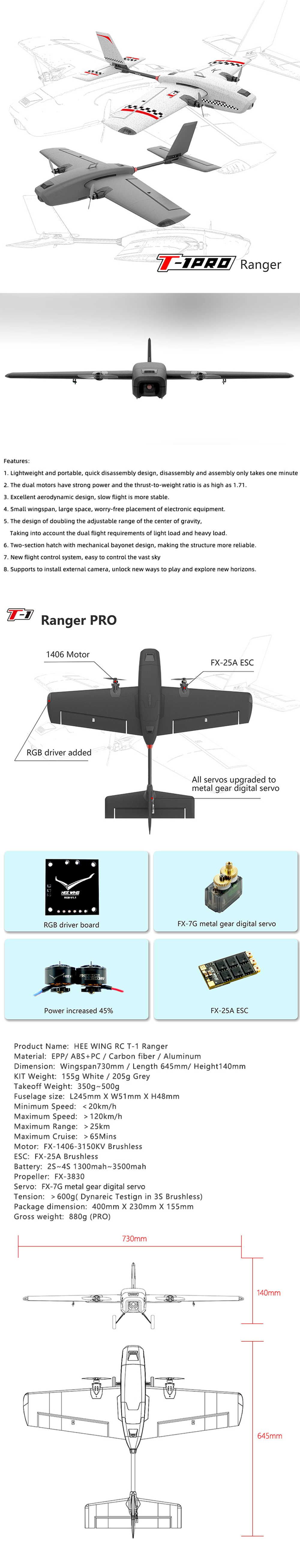 1x HEE WING T-1 Ranger 730mm Wingspan Dual Motor EPP FPV RC Airplane KIT