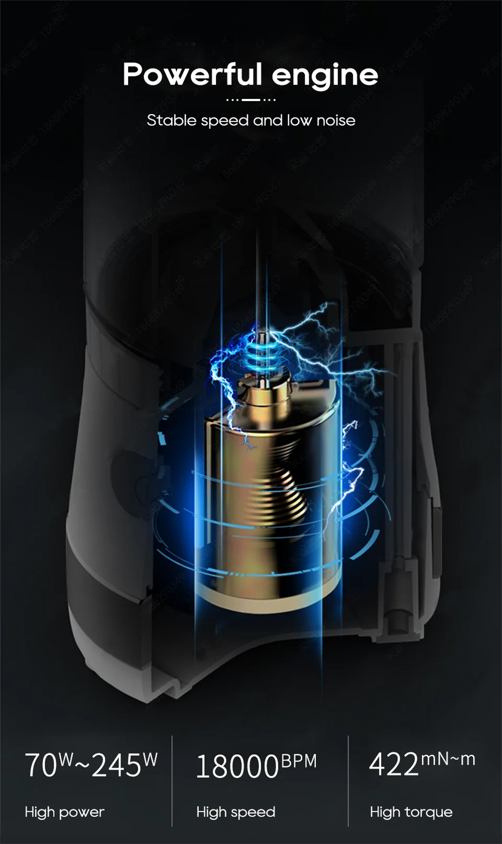 - 70W moottori, korkea vääntö ja 18,000 kierrosta/min nopea jauhatustahti
