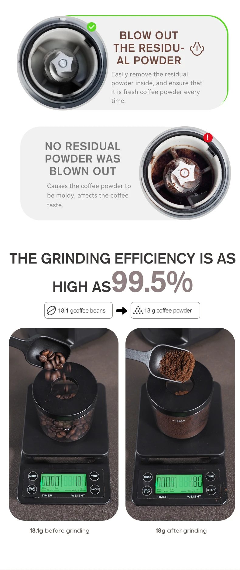 - Suuri kapasiteetti – 7.5 unssia (210g) papusäiliö ja irrotettava jauhatussäiliö.
