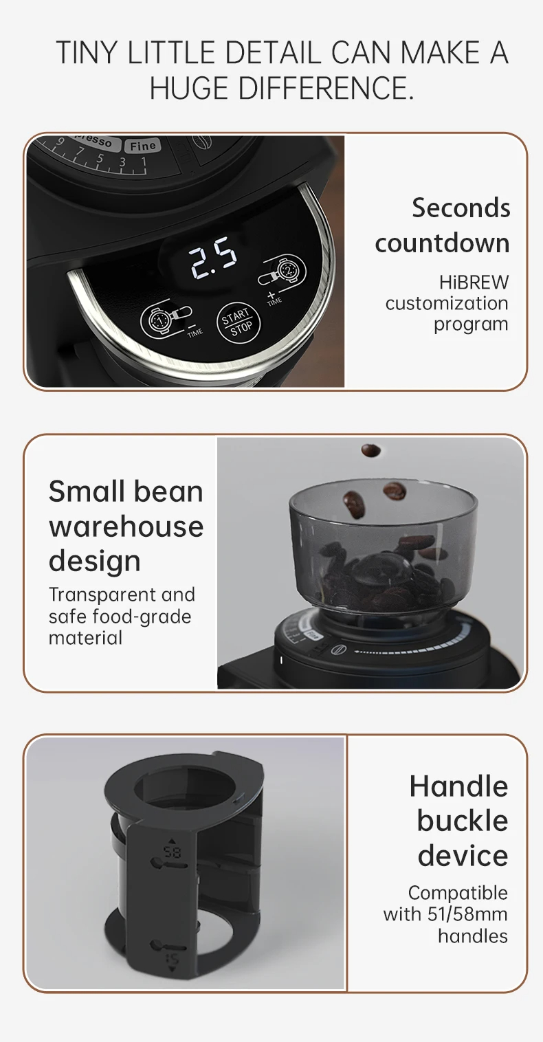 HiBREW G3A automaattinen kartiomylly 31-portaisella säädöllä läpinäkyvällä papusäiliöllä espressoon ja suodatukseen