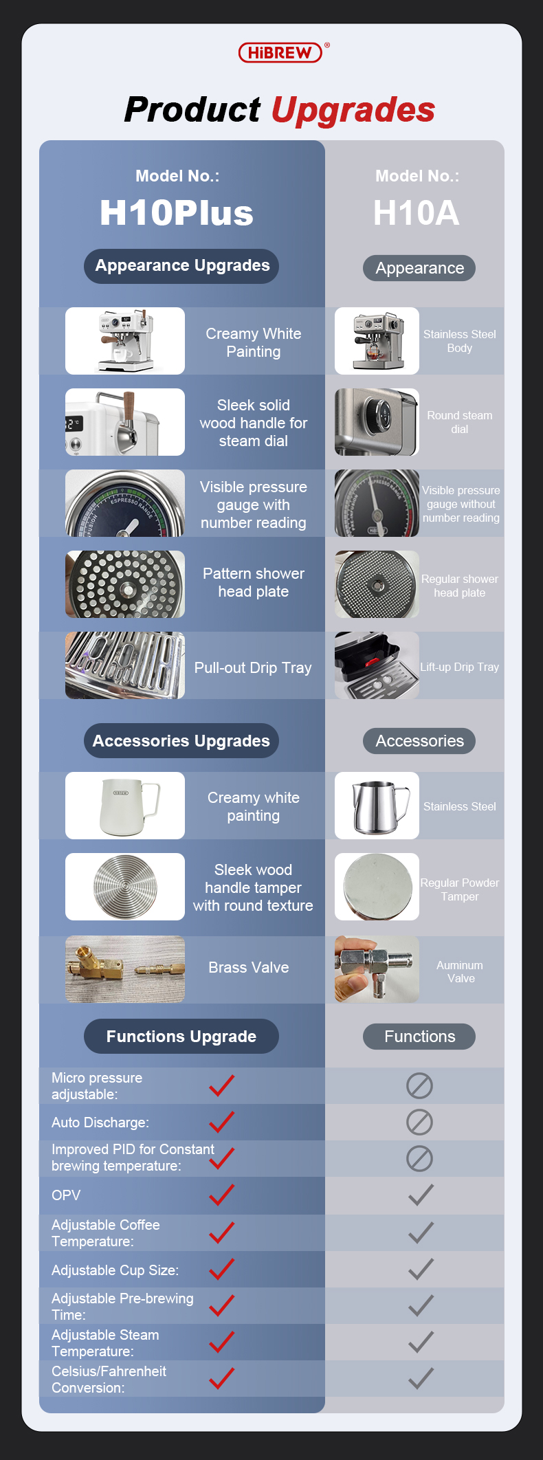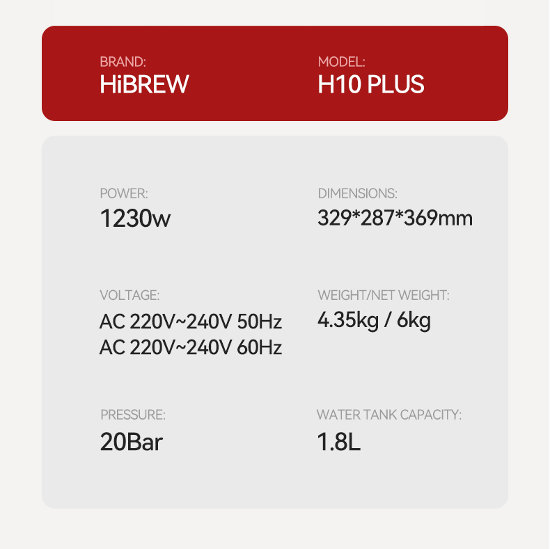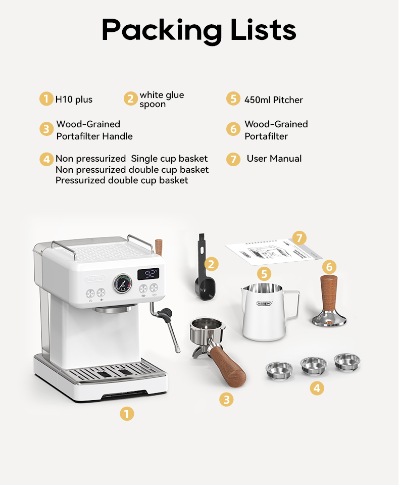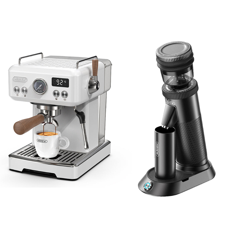 HiBREW H10 Plus -kahvikonesetti tarjoaa kotibaristalle tasaisen espresson, tehokkaan höyryn maitovaahtoon ja tarkan jauhatussäätelyn G5-kahvimyllyllä.