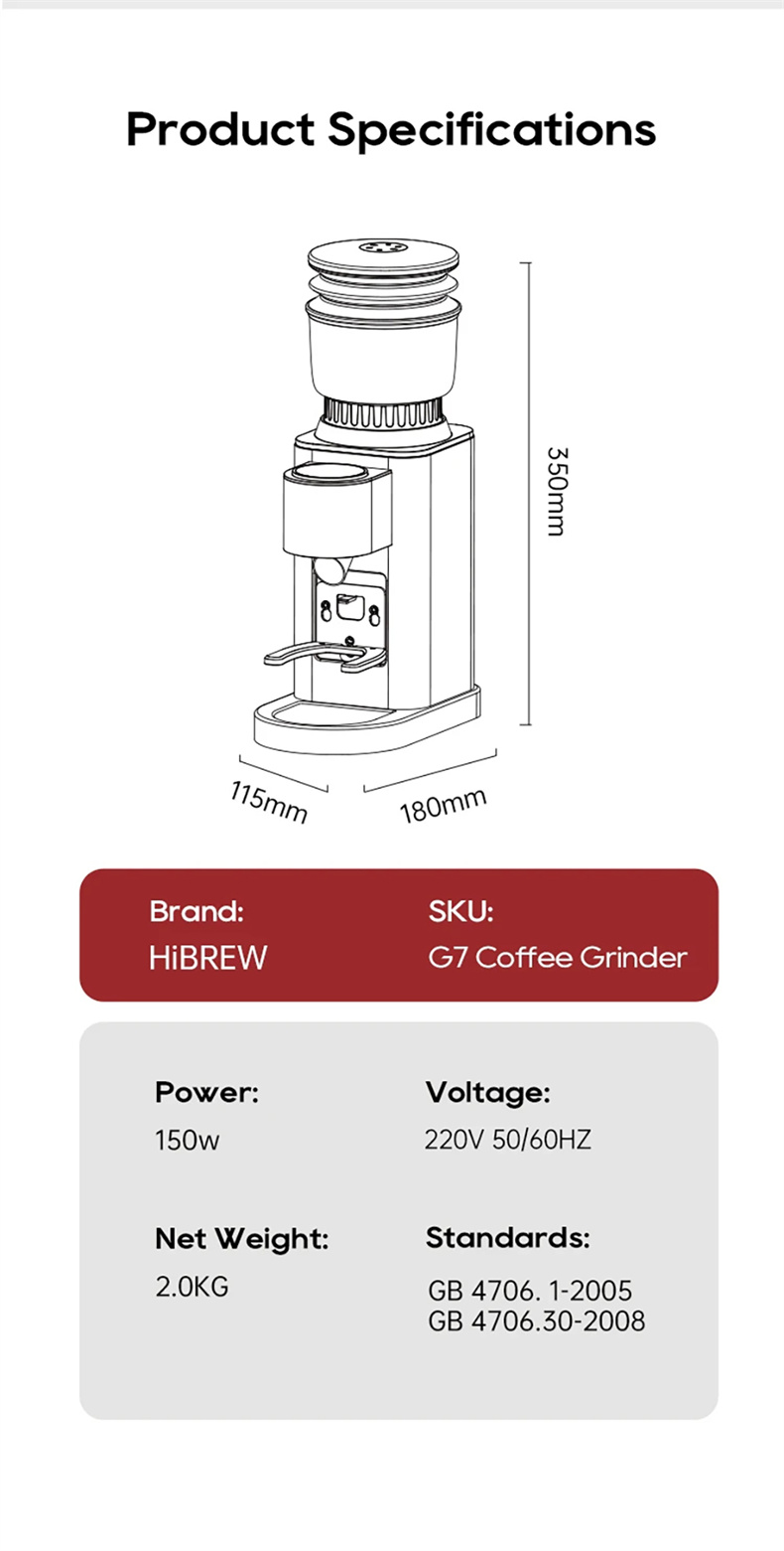 - 48 jauhatusastetta ja kosketusnäyttö: G7 tarjoaa hienosäädön espressolle, digitaalisen näytön ja 0.1 sekunnin ajoitustarkkuuden. Kartiomaiset terät takaavat tasaisen partikkelikoon, yhteensopiva 51/54/58 mm portafilttereiden kanssa.